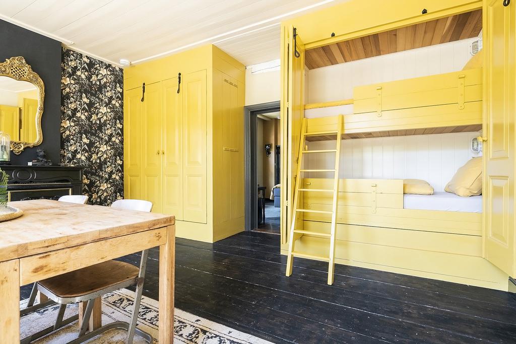 De Pronkkamer: straalt grandeur uit en heeft een geel thema, met hoge plafonds, klassieke inrichting, een woonkamer, aparte slaapkamer en bedstee. Geschikt voor twee volwassenen en twee kinderen.