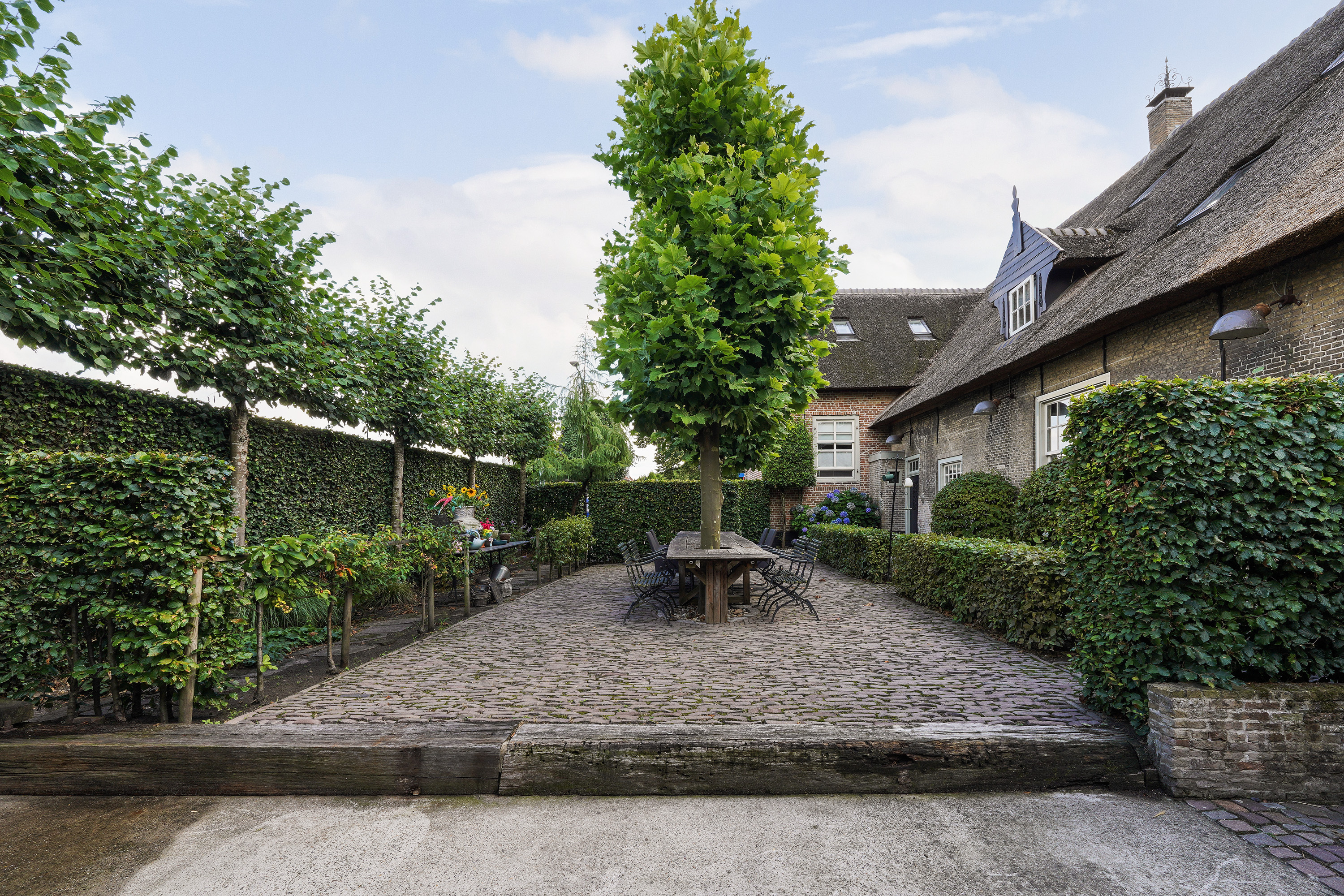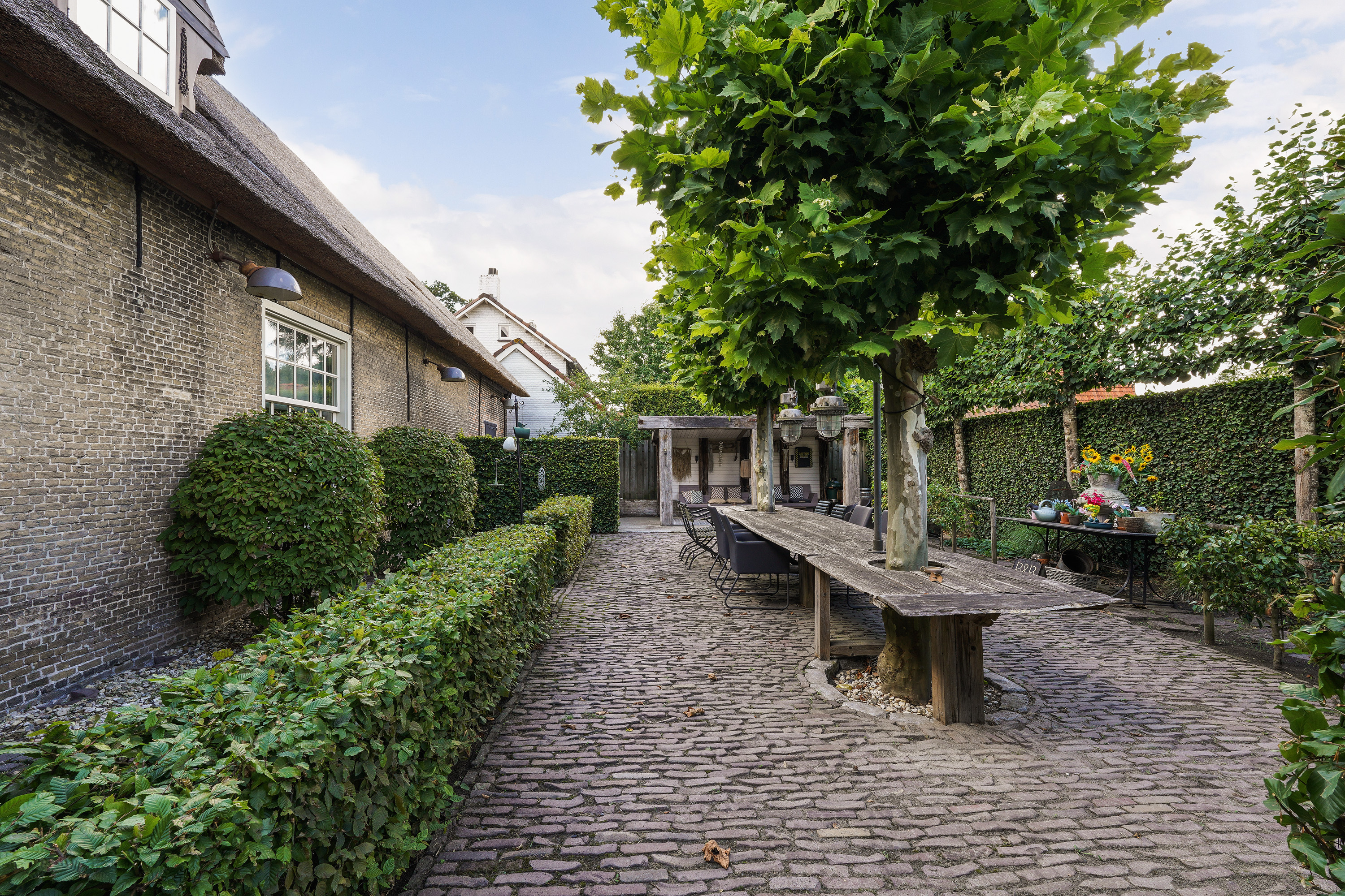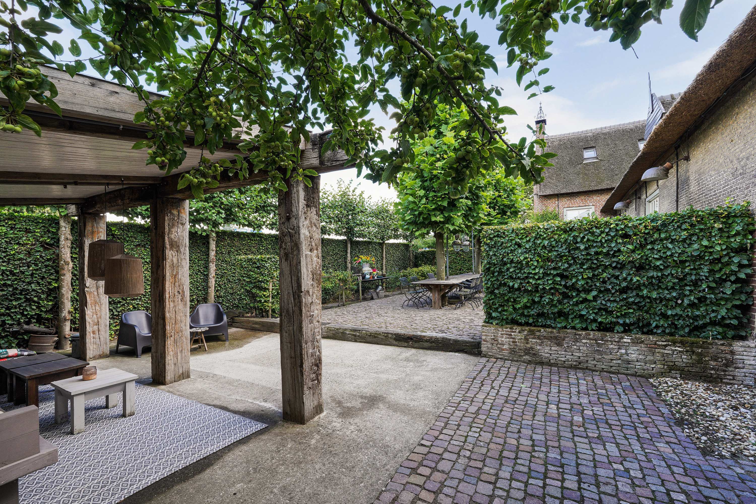 De tuin aan de achterzijde is een oase van groen, met volop zon, privacy en ruimte om te ontspannen. Of je nu houdt van tuinieren, buiten eten of simpelweg genieten van de rust: hier kan het allemaal. Het geheel sluit mooi aan bij de monumentale uitstraling van de woning, met kinderkopjes, dichte hagen, volwassen bomen en vaste planten. Achter in de tuin staat een robuuste houten overkapping, een beschutte plek met mooi zicht over de hele tuin. Aan de voorzijde is er voldoende parkeergelegenheid op eigen terrein.