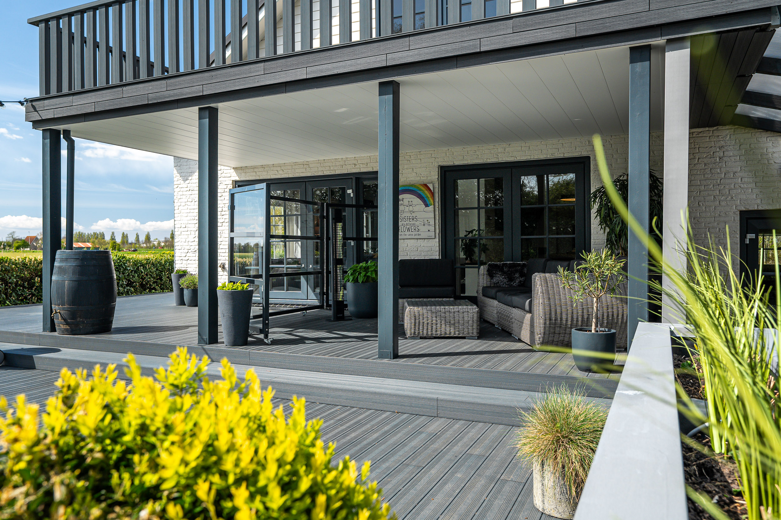 De overloop met vide kijkt uit op de woonkamer en heeft openslaande deuren naar een riant zonneterras (balkon) op het zuiden. Een geweldige plek om de mooiste zons-opgang en -ondergang te beleven. Ook hier voel je volledig privé door de beschutting van de tuin. De vide biedt voldoende plaats voor een gezellige speelhoek, werkplek of bibliotheek.
