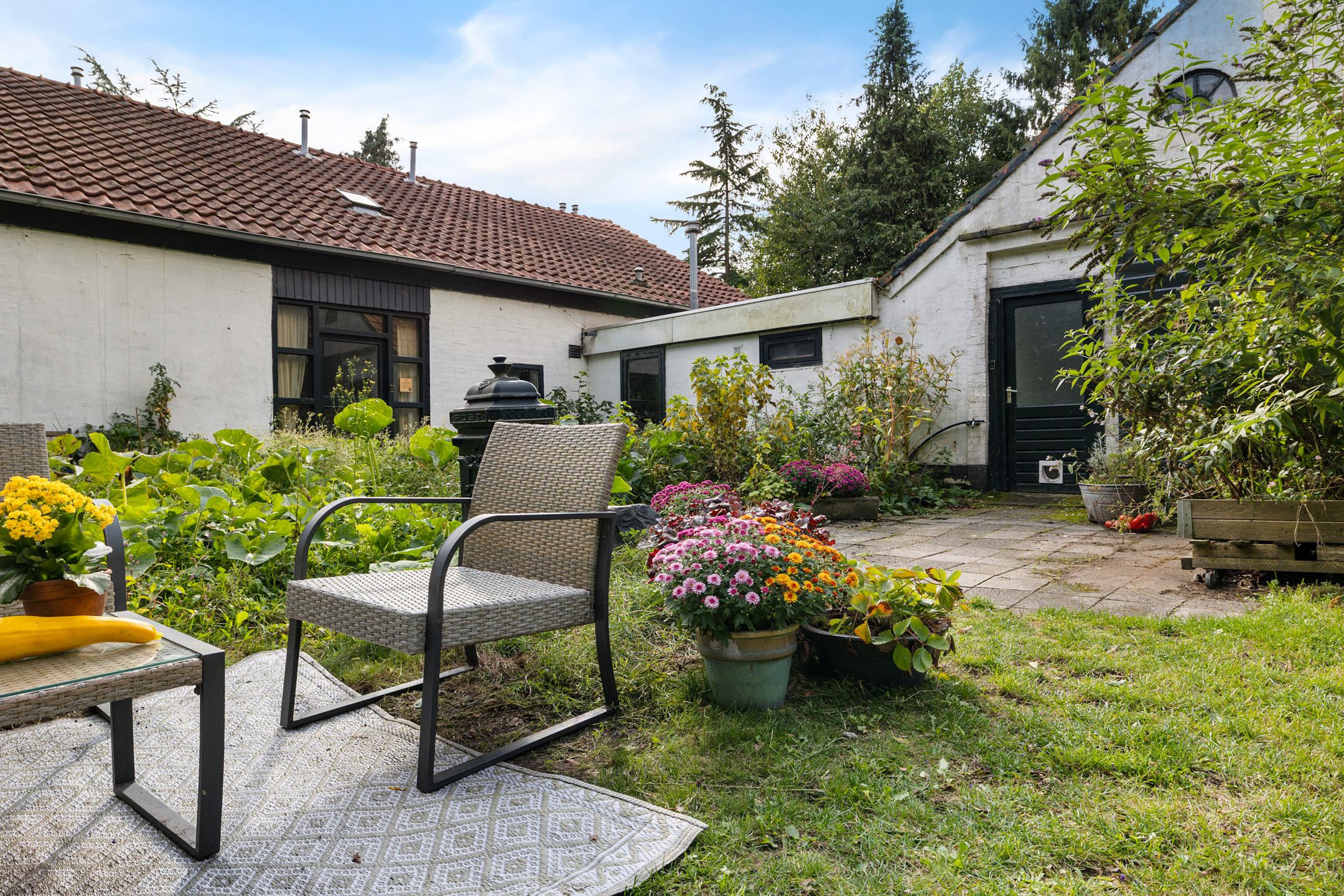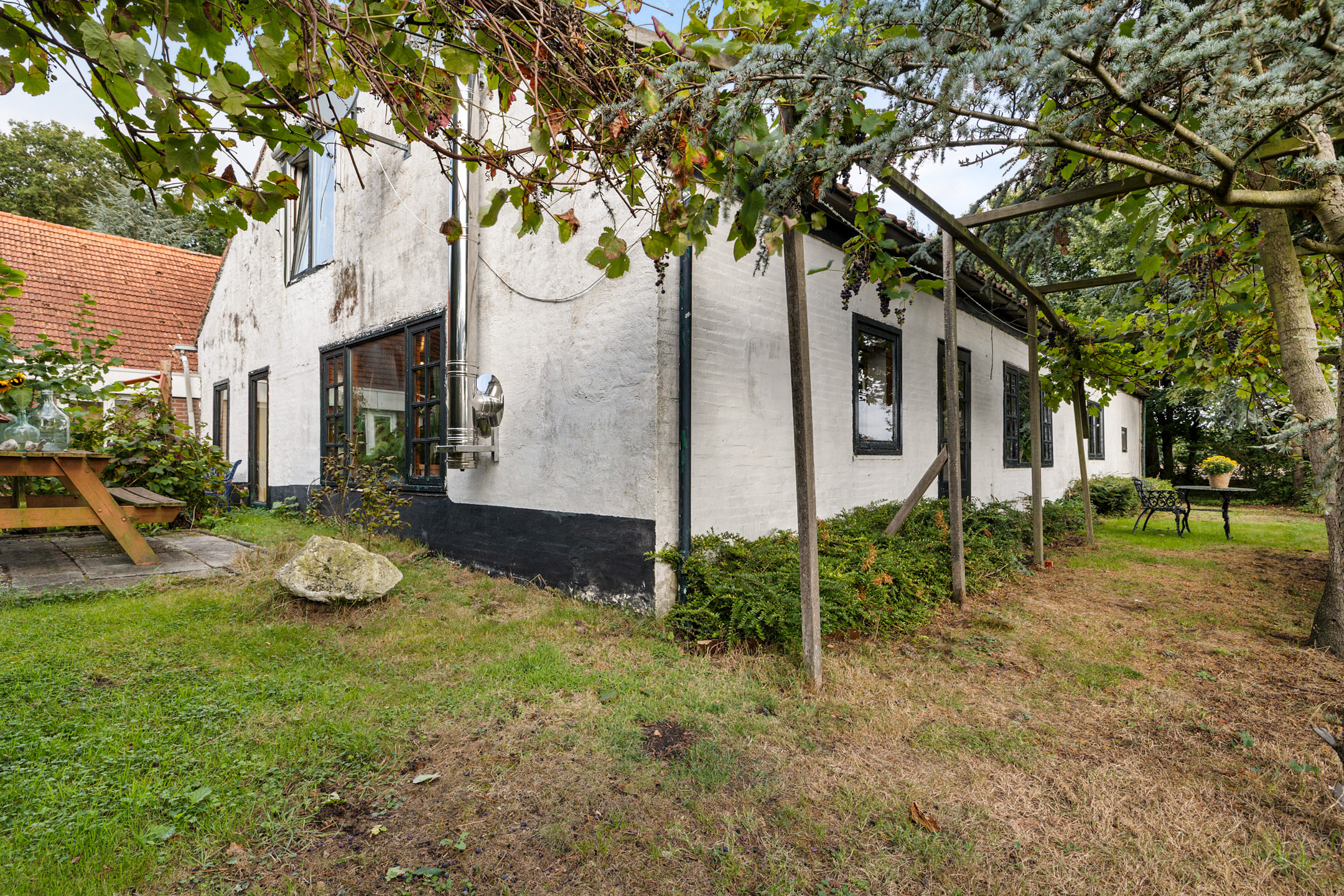 Het volledig omheinde perceel biedt een veelzijdige en natuurrijke buitenruimte: