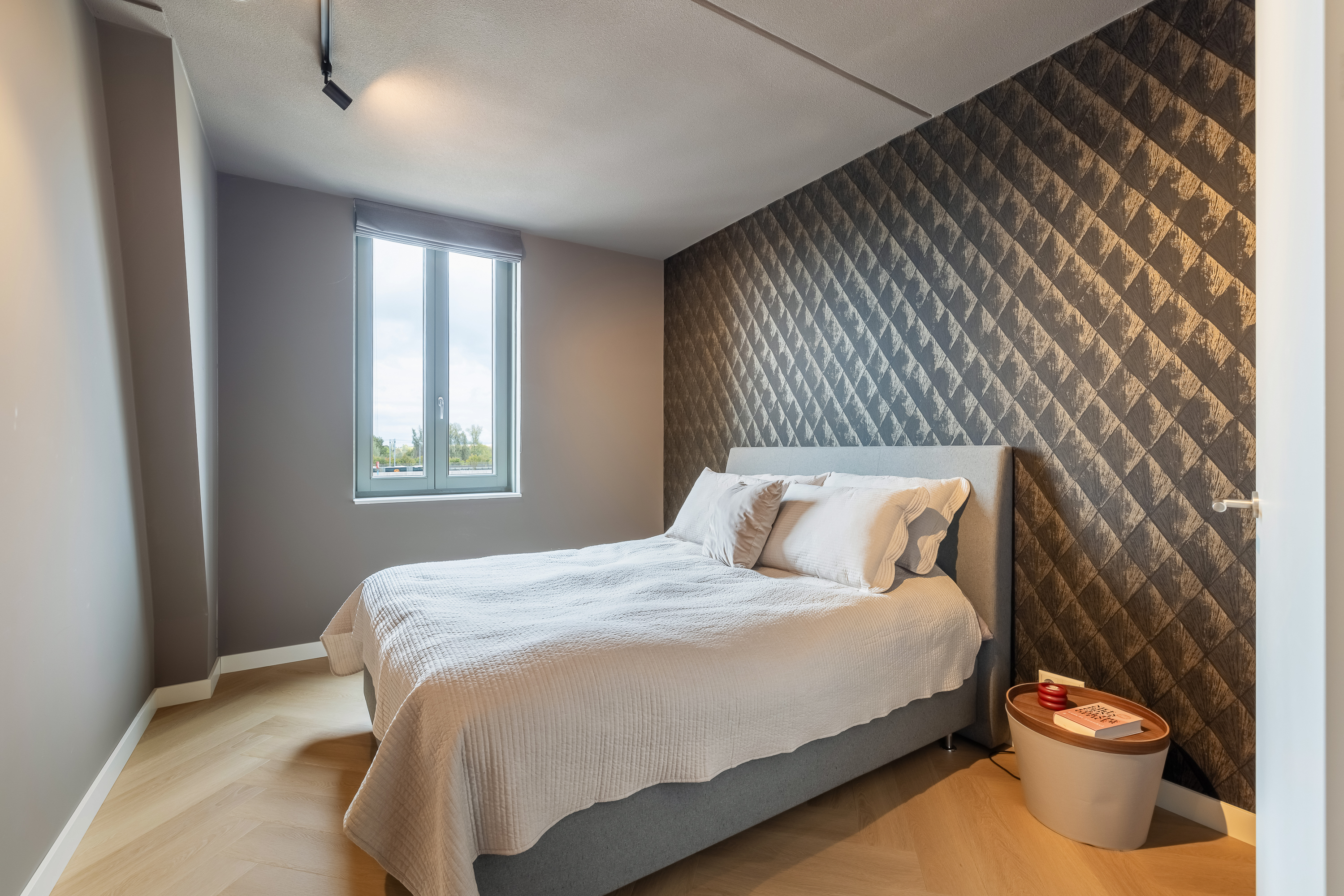De woning is tot in detail ontworpen. Warm, luxe en eigentijds, zonder koel of afstandelijk te worden. De maatwerkkeuken is een echte leefkeuken. Kasten tot aan het plafond, mooie materialen en goede inbouwapparatuur die met wifi te bedienen is. Je zet de oven alvast aan onderweg naar huis, laat de broodjes bakken voordat je beneden komt en schuift daarna meteen aan om samen te eten. Alles is strak uitgelijnd, nergens standaard, alles klopt. Dit is een huis voor mensen die oog hebben voor detail.