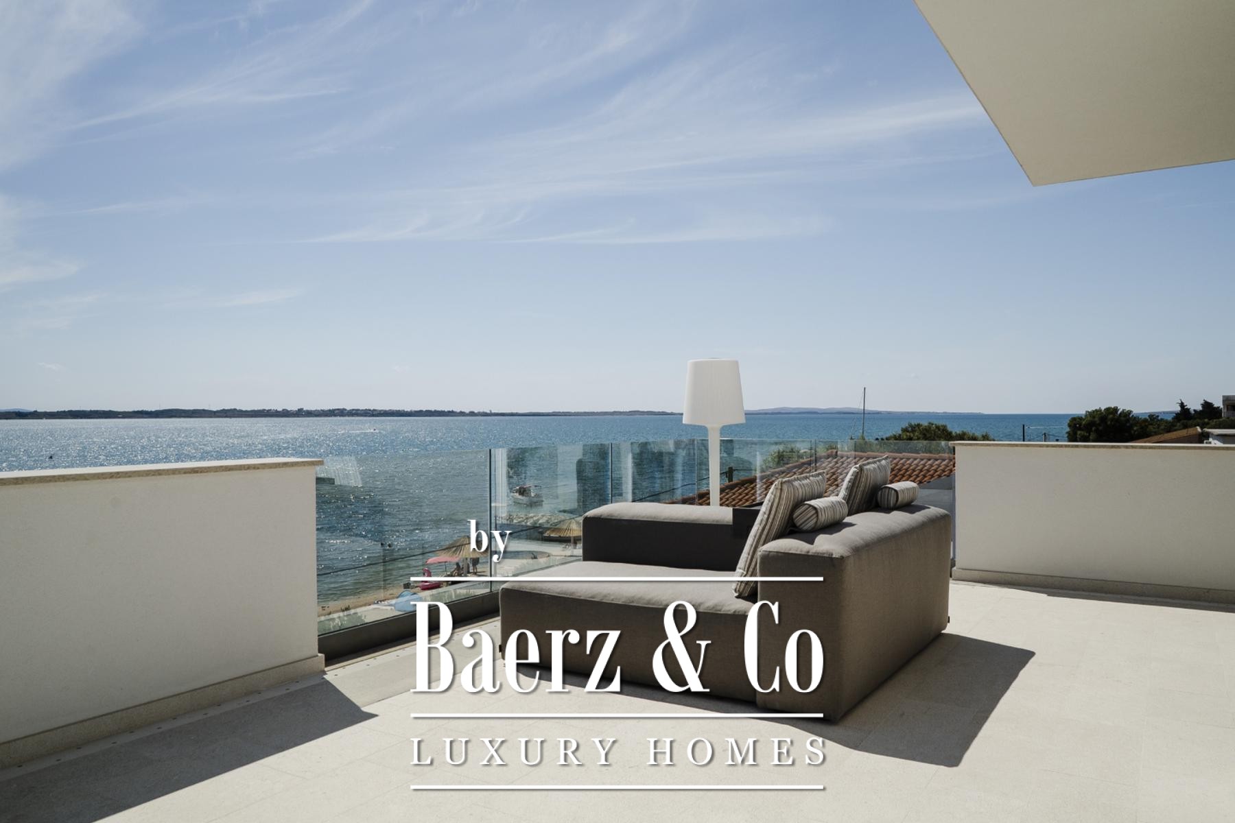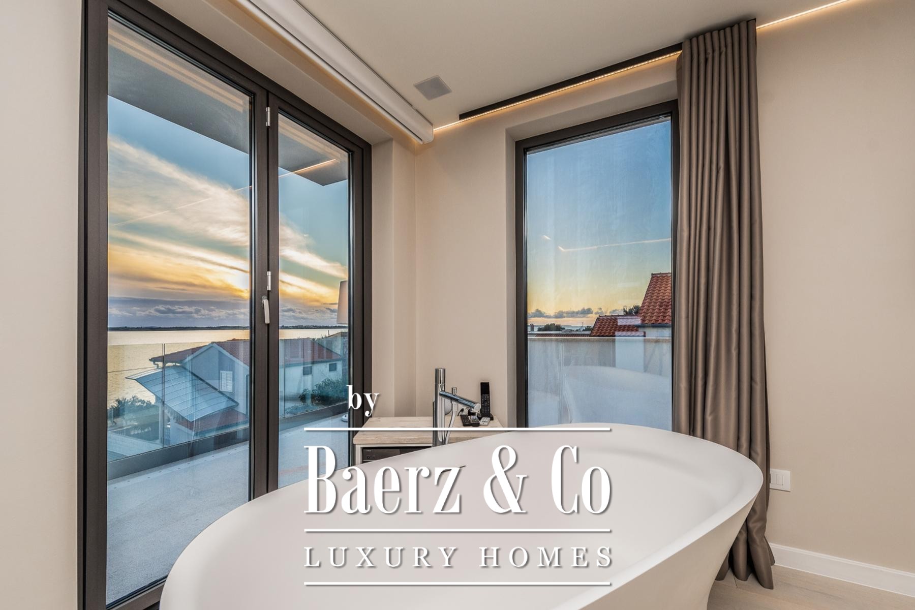 Het luxe villa complex aan zee in Vrsi biedt een zeldzame kans om twee moderne, volledig uitgeruste villa’s met directe toegang tot de Adriatische Zee te verwerven. Deze exclusieve eigendom, voltooid in 2020, ligt op de absolute eerste strandlijn, waar het vrije uitzicht op zee en baai elke ruimte kenmerkt. Riante ramen van vloer tot plafond laten het mediterrane licht en panorama’s binnenstromen in zorgvuldig vormgegeven interieurs, met een perfecte balans tussen privacy en openheid voor familie of vrienden.