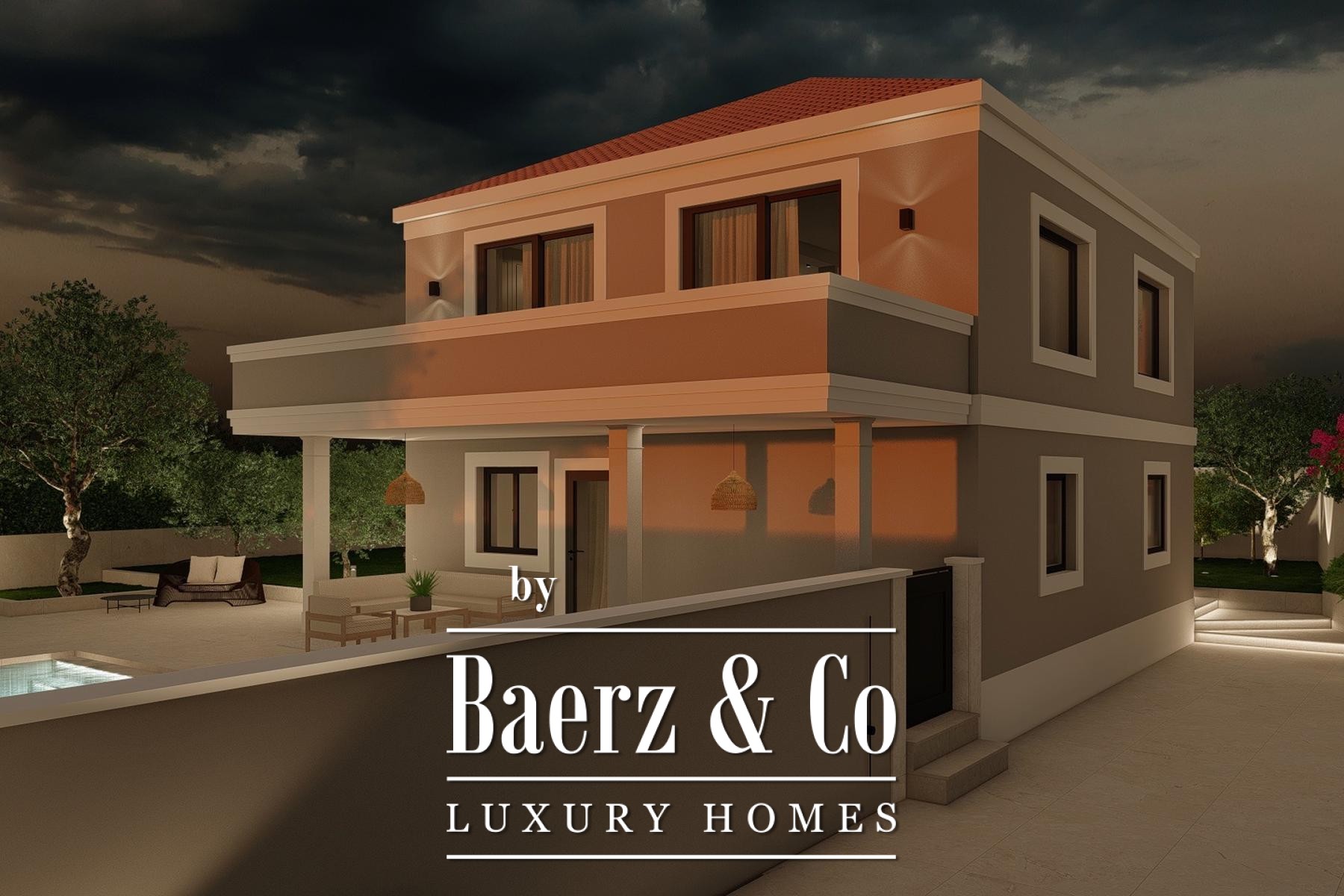 Deze villa in Zadar verwelkomt gasten via een entreehal naar drie slaapkamers op de begane grond, elk voorzien van een eigen badkamer. De indeling omvat een loggia, een overdekt terras voor rustige ochtenden, een wasruimte en een multifunctionele ruimte die geschikt is voor wellness, werken of fitness. Op de eerste verdieping bevindt zich een bijzonder lichte living, naadloos verbonden met een moderne keuken en eetkamer. De master suite beschikt over dubbele inloopkasten en een en-suite badkamer, aangevuld met gastfaciliteiten en een ruim terras met vrij uitzicht op de horizon.