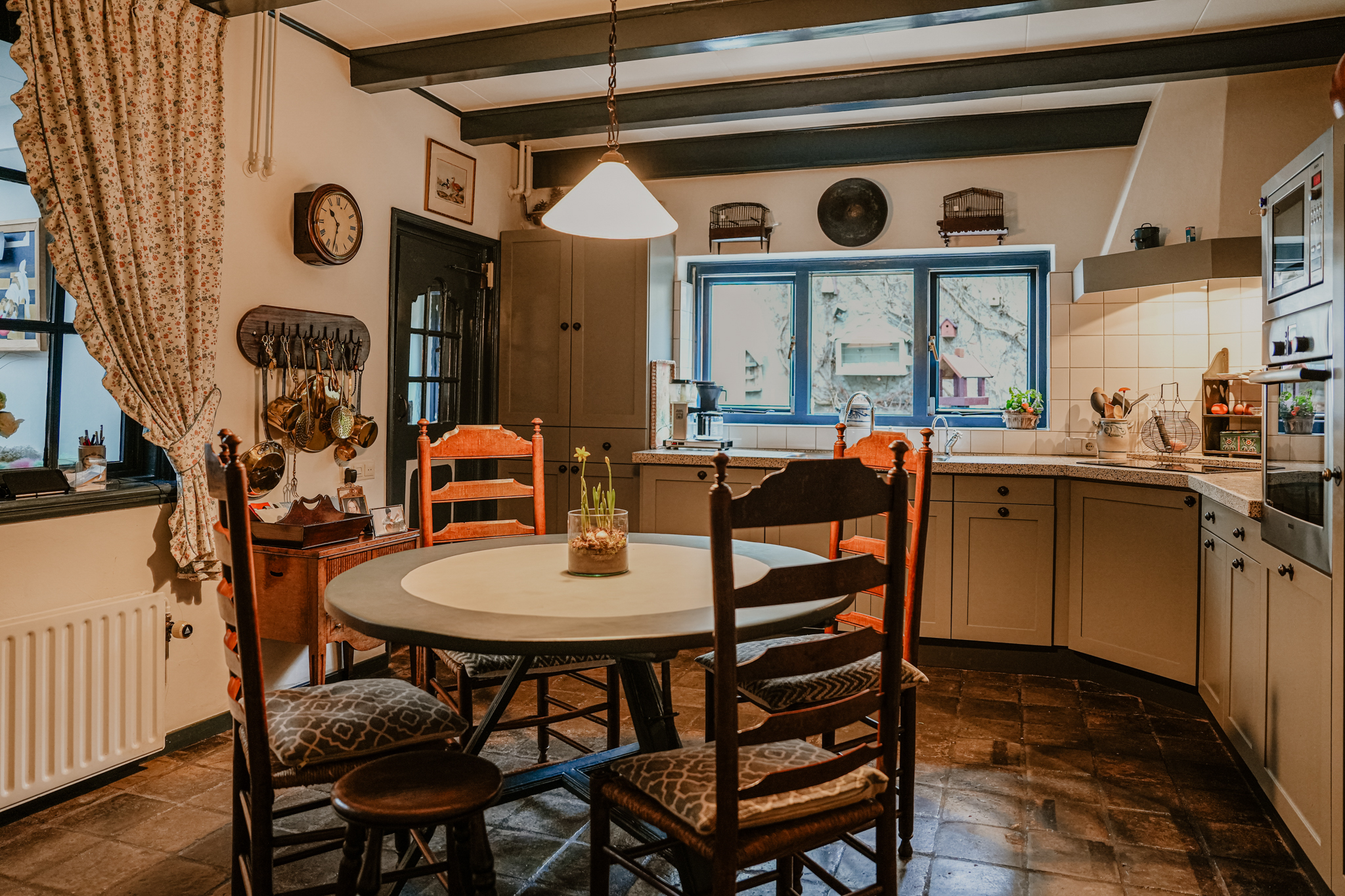 Boven de keuken bevindt zich een werkkamer, bereikbaar via een vaste trap. Vanuit deze kamer is zicht op de achtergevel van het pand. Aan het trappenhuis grenst een sfeervolle slaap-/werkkamer met visgraatparket en houten lambrisering. Er zijn twee 24-ruits schuifvensters, vanwaar zicht is op de werkkamer boven de keuken.