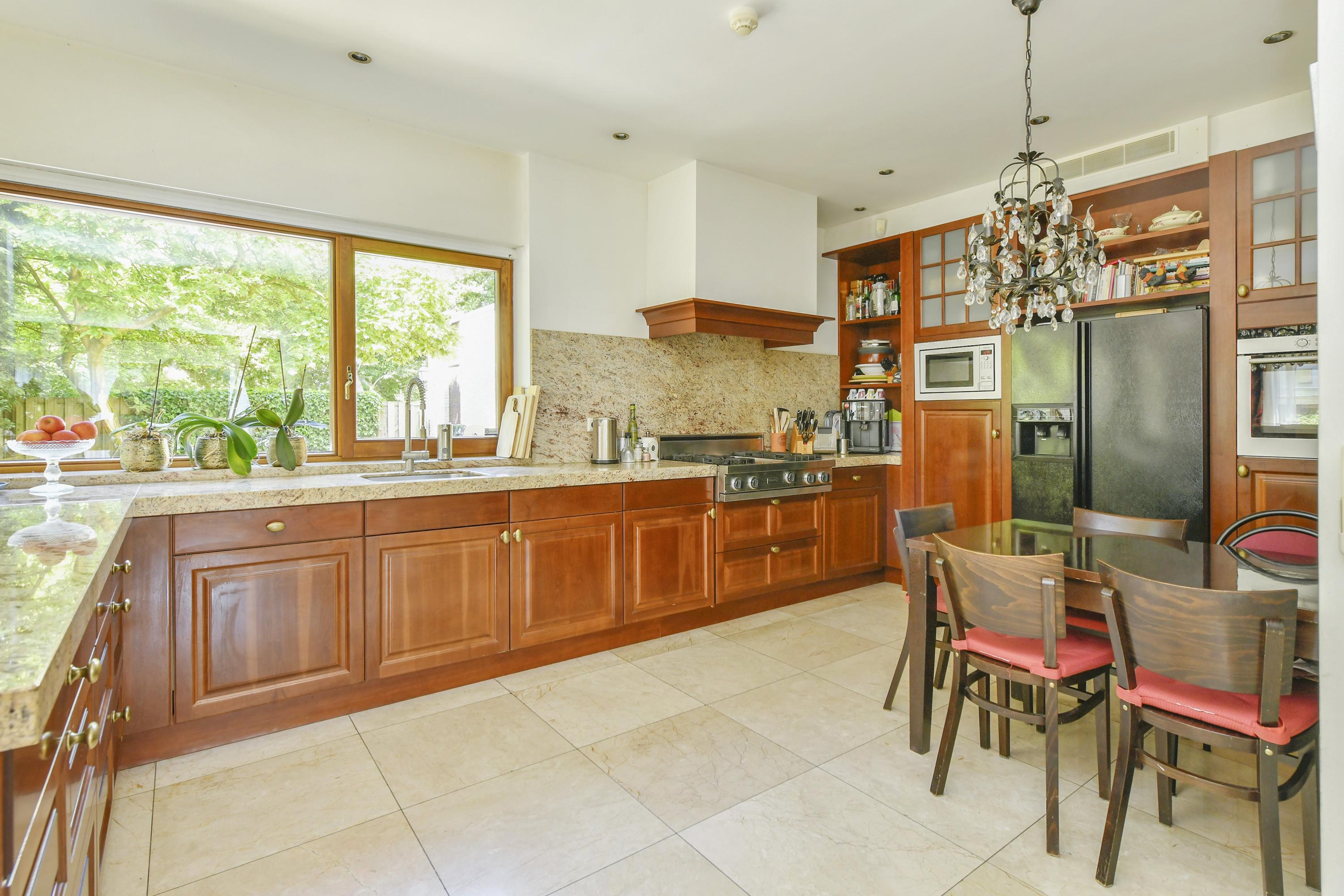 Резиденция расположена так, что можно в полной мере насладиться зелёной атмосферой Амстелвена, при этом повседневная инфраструктура, школы, зоны отдыха вроде Amsterdamse Bos и De Poel, торговые центры Stadshart Amstelveen находятся в нескольких минутах езды на велосипеде или трамвае. До района Амстердам-Зюид, аэропорта Схипхол и делового района Zuidas можно быстро добраться по автотрассе или общественным транспортом. Эта отдельно стоящая вилла на продажу в Амстелвене идеально подойдёт тем, кто ищет тишину и комфорт без компромиссов: частная парковка, кондиционирование в большинстве комнат, естественная вентиляция, двойные стеклопакеты и отопление центральным котлом.