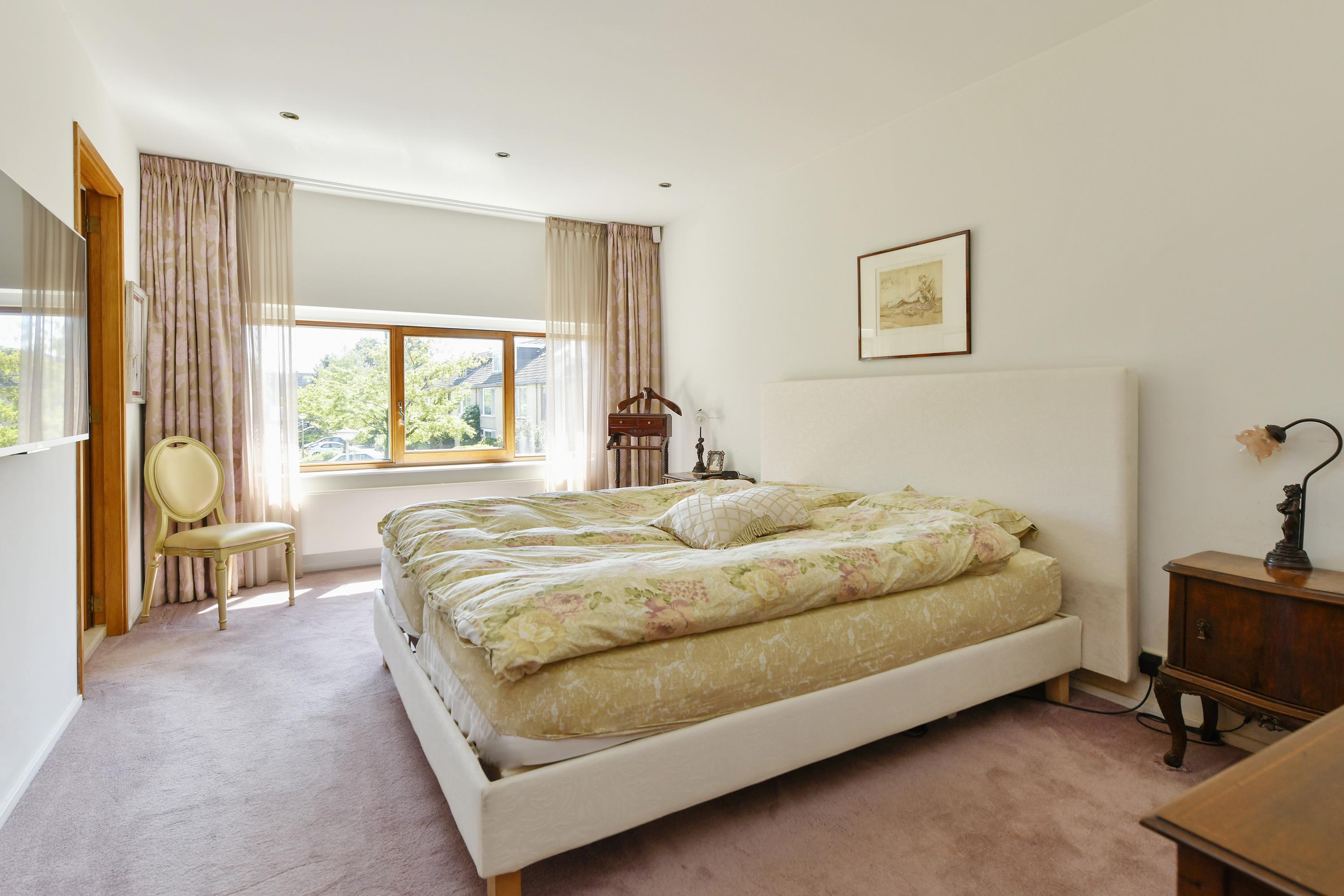 Эта отдельно стоящая вилла в Амстелвене располагает примерно 302 м² жилой площади на частном участке в 683 м². Находится на тихой улице Босфор в районе Костверлорен, резиденция предлагает шесть спален и три ванные комнаты, гармонично сочетая комфорт и приватность для семейной жизни или приёма гостей. Просторный сад на юго-западе выходит прямо к открытой воде, создавая редкое ощущение уединения и близости к природе в городской среде.