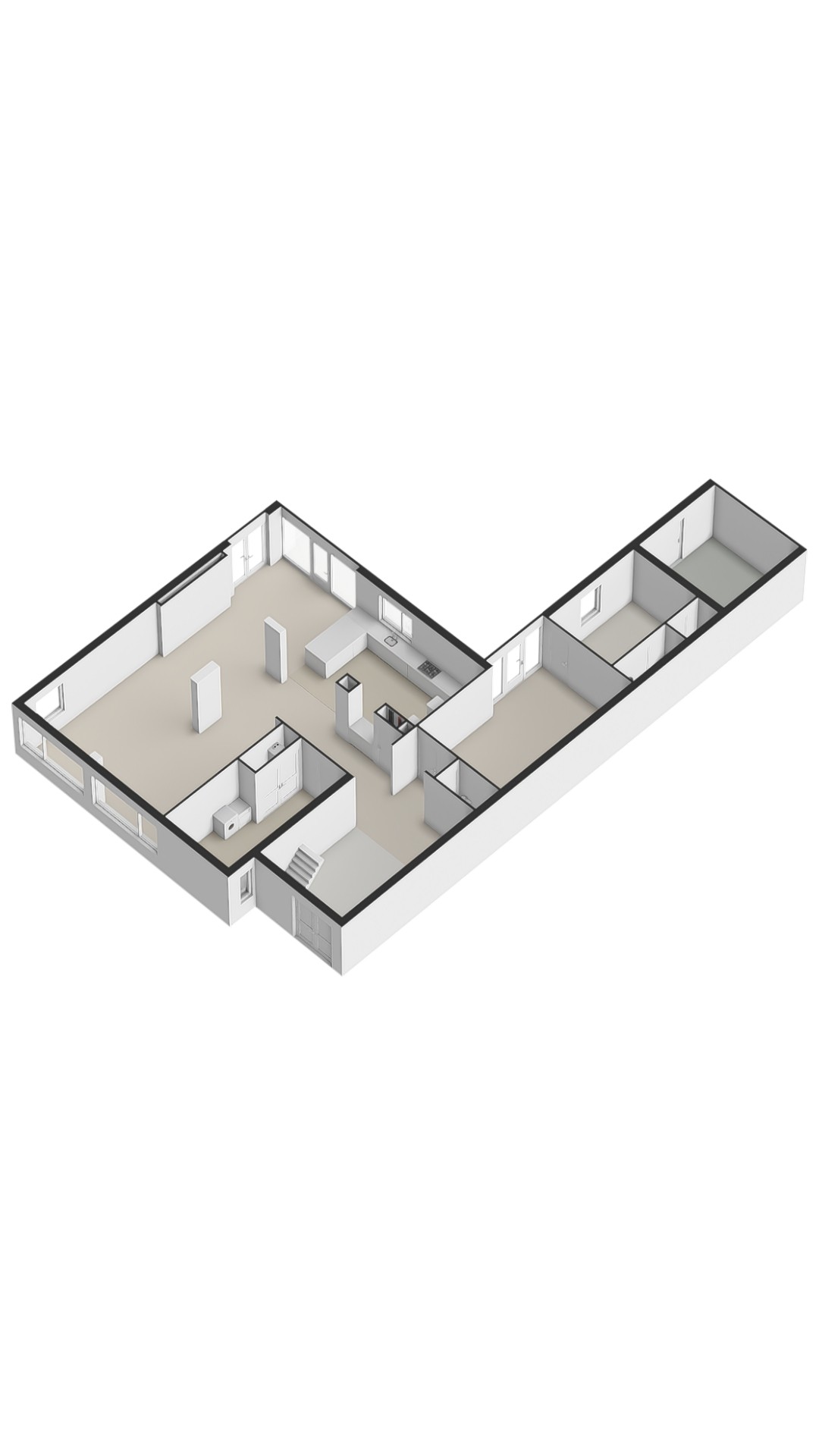 Внутри гостиная наполняется естественным светом через большие окна и французские двери, что подчёркивает свободную планировку пространства. Кухня с встроенной техникой органично переходит в просторную жилую зону, способствуя созданию уютной атмосферы для повседневной жизни. Подсобное помещение обеспечивает практичные решения для хранения и подключения прачечной. На первом этаже находится многофункциональная спальня с отдельной ванной комнатой, идеально подходящая для гостей либо в качестве кабинета или студии.