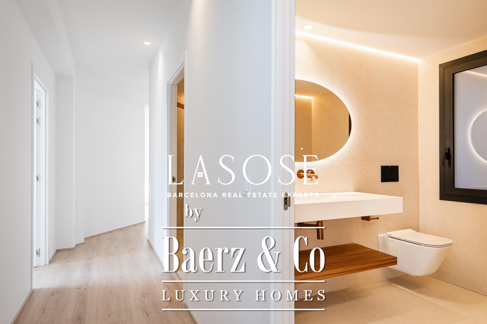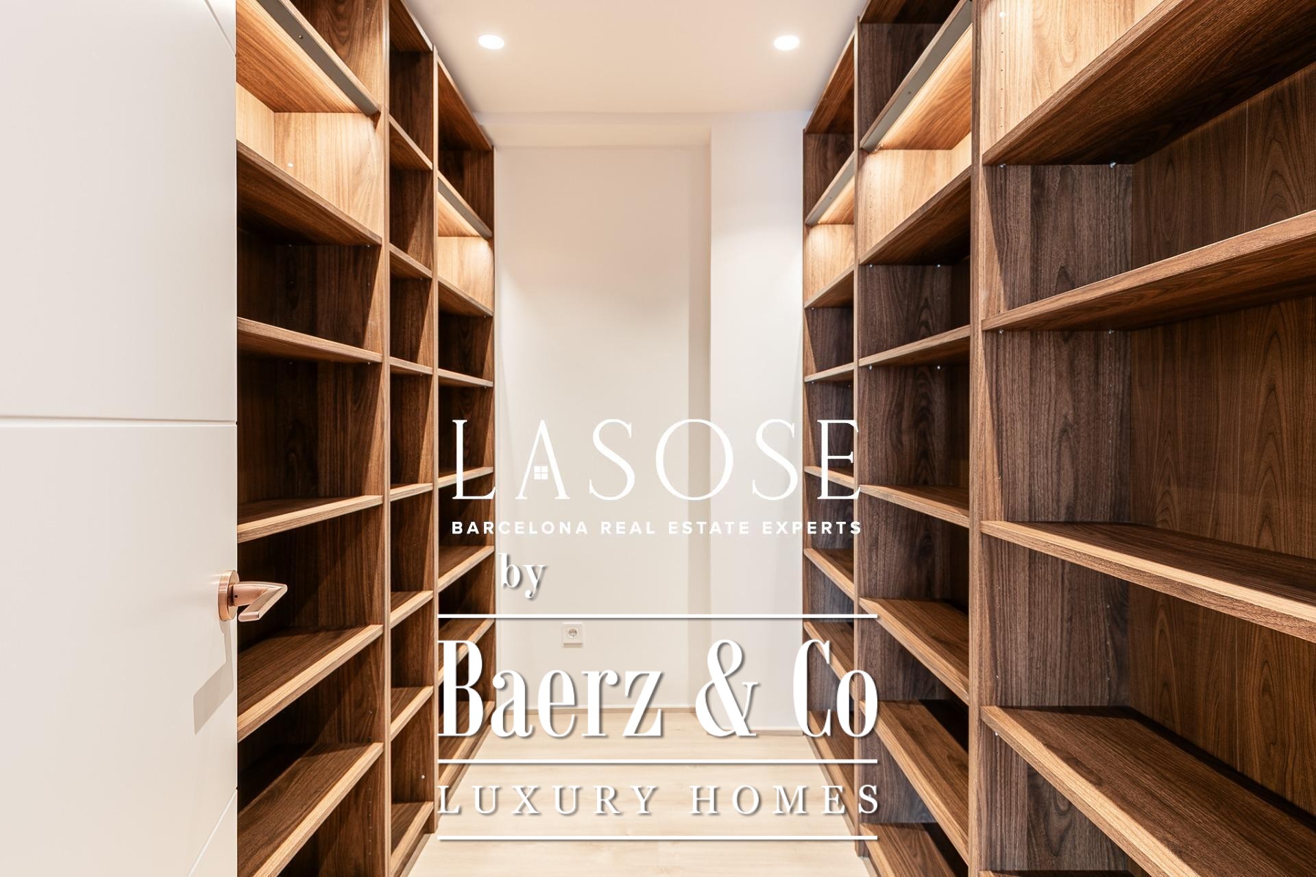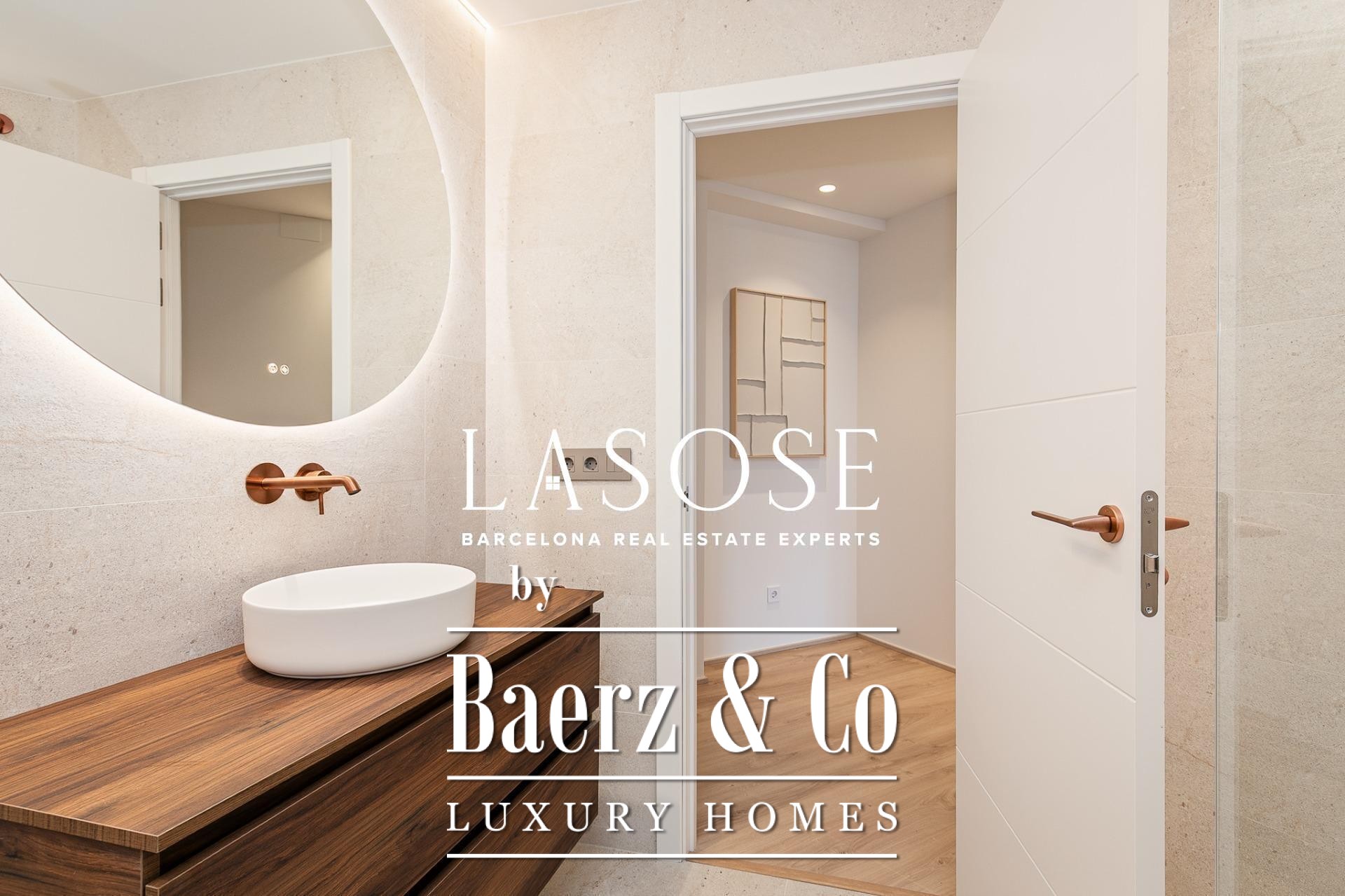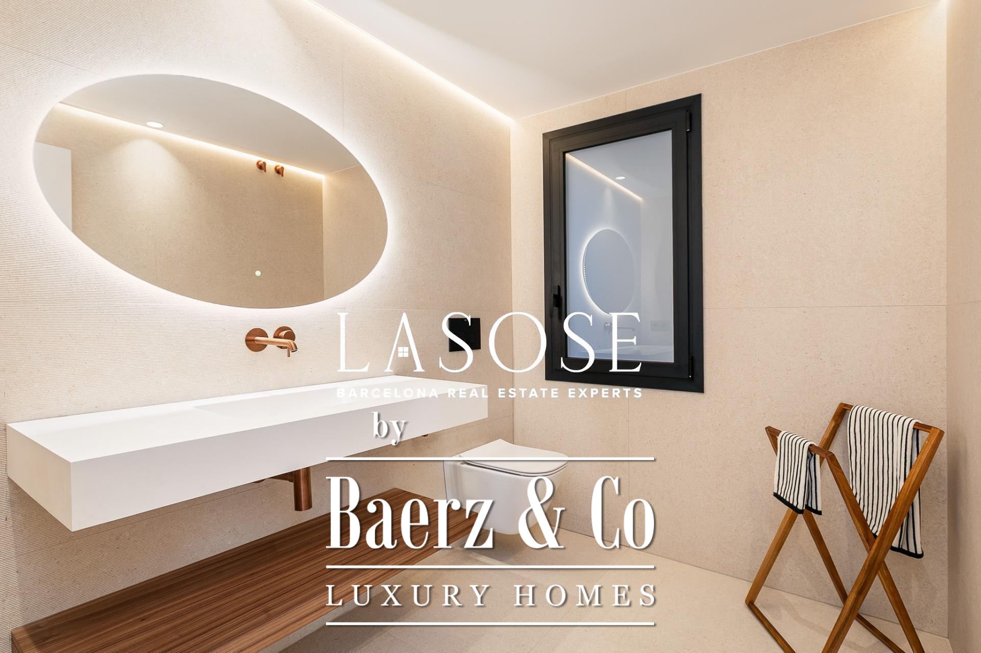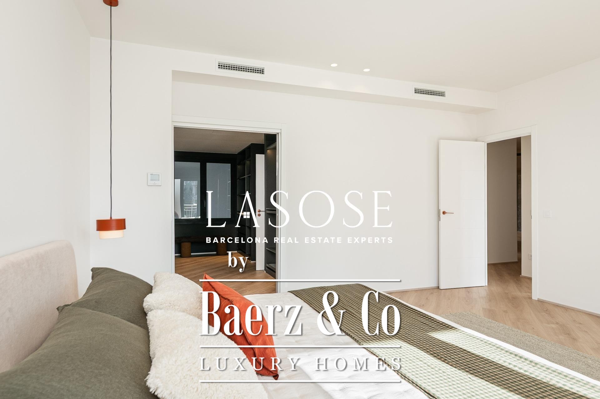 Апартаменты полностью отреставрированы с использованием премиальных материалов. Естественный свет проникает сквозь широкие окна, выходящие на юго-восток, наполняя интерьер светом и выделяя просторную открытую зону гостиной-столовой площадью 90 м². Отсюда двери ведут на угловую панорамную террасу с видом на зелёные бульвары и Plaça Mossèn Jacint Verdaguer. Кухня Santos, оснащённая техникой Bosch, сконцентрирована вокруг острова с интегрированным винным шкафом и кофейной зоной, которую дополняет кладовая для скрытого хранения.