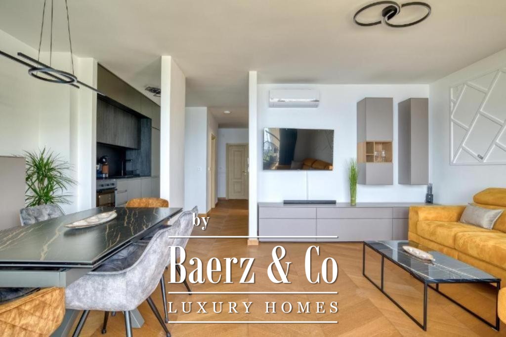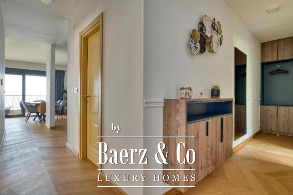Планировка апартаментов тщательно продумана и функциональна. Три спальни и две ванные комнаты позволяют с комфортом разместить семью или гостей; холл ведёт в просторную гостиную с кухней и столовой зоной, созданной для неформальных встреч. Широкие окна открывают виды на море и горы, соединяя террасу с окружающей природой. Апартаменты полностью меблированы и готовы к немедленному проживанию.