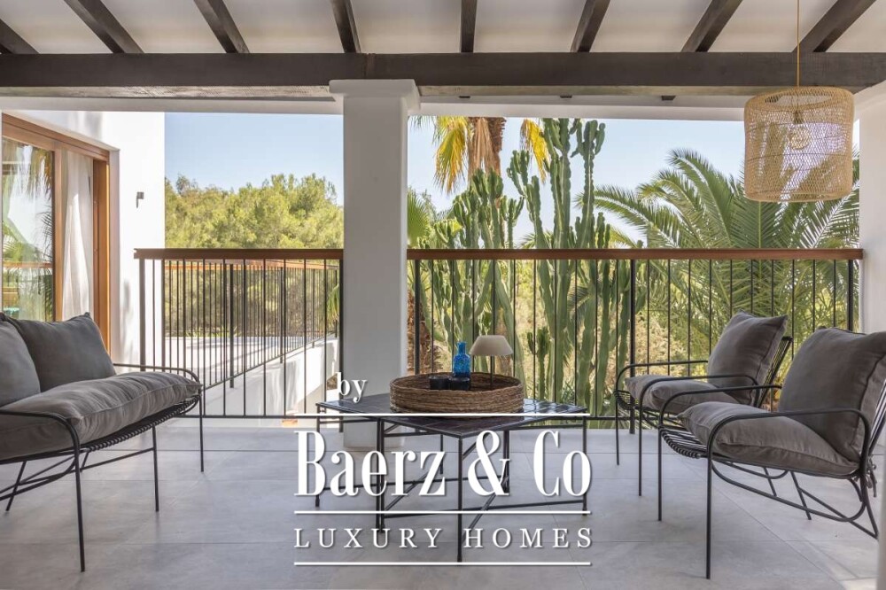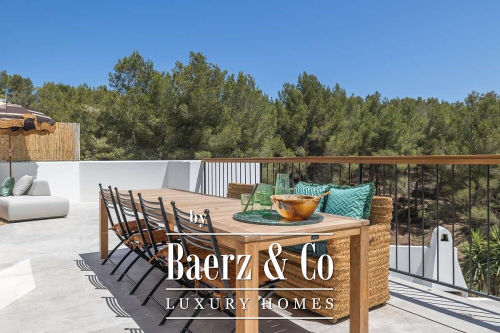 Вилла Can Furnet с панорамными видами на море и Дальт Вила — образец средиземноморской элегантности, возвышающийся над динамичным побережьем Ибицы. Эта вилла находится в привилегированном жилом комплексе и располагает 387 м² изысканных жилых пространств на участке площадью 960 м². В доме оборудовано шесть просторных спален и шесть ванных комнат, включая отдельные апартаменты для гостей с собственным входом, кухней, спальней и ванной комнатой, что обеспечивает абсолютную приватность.