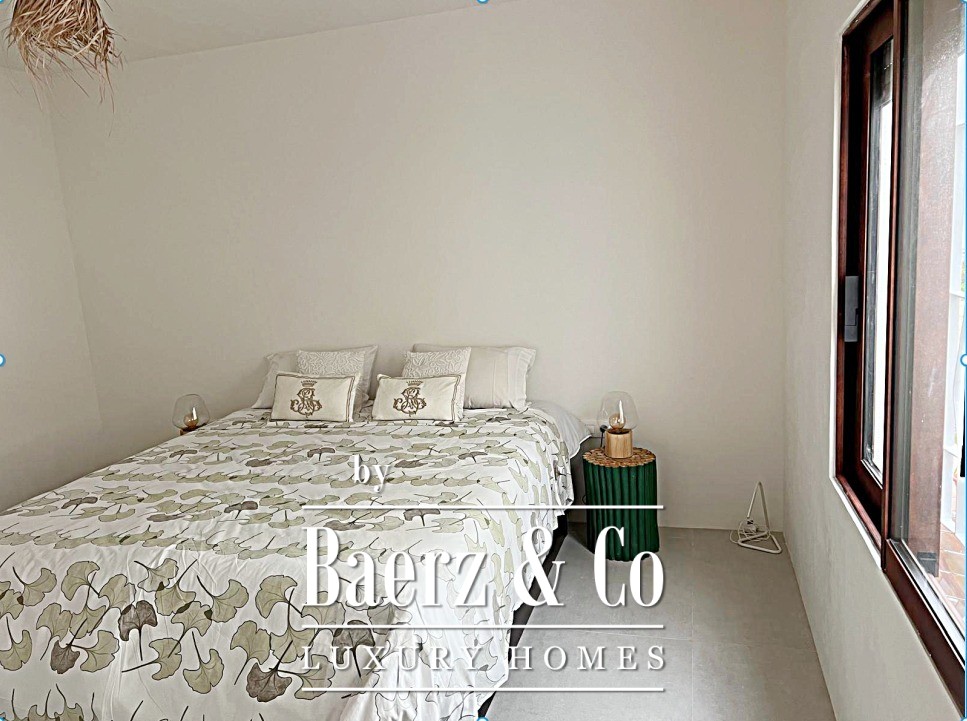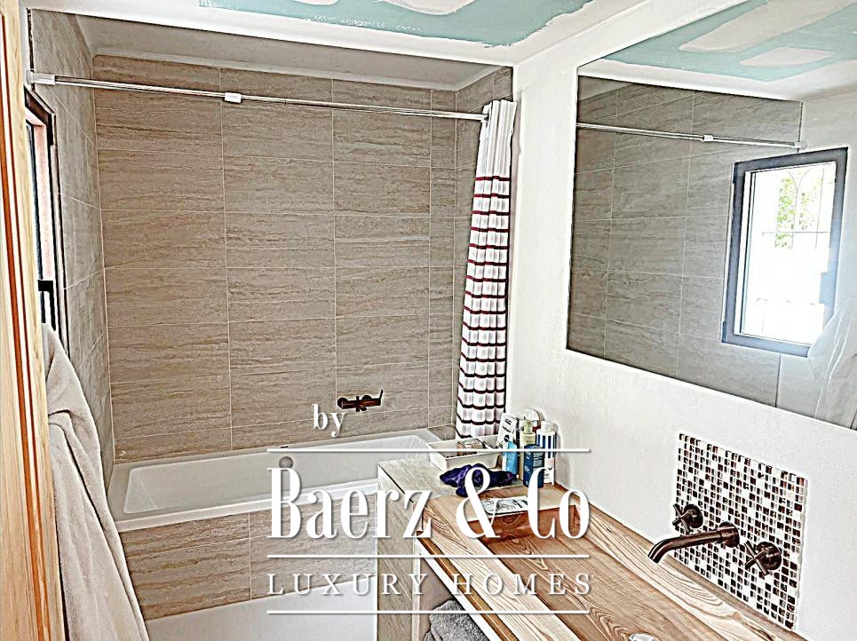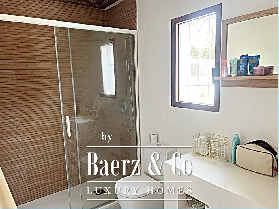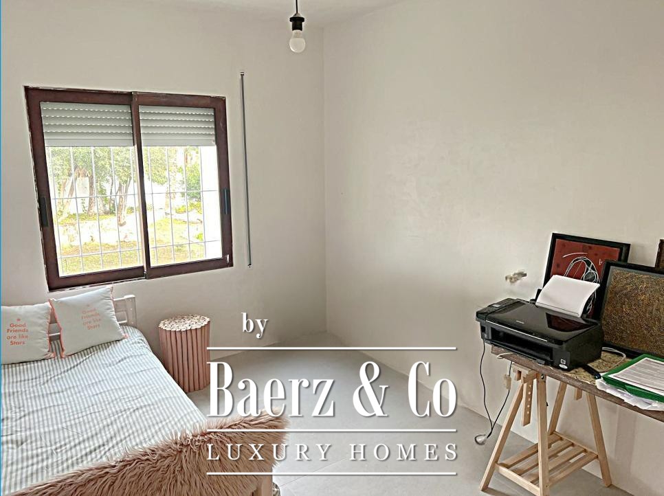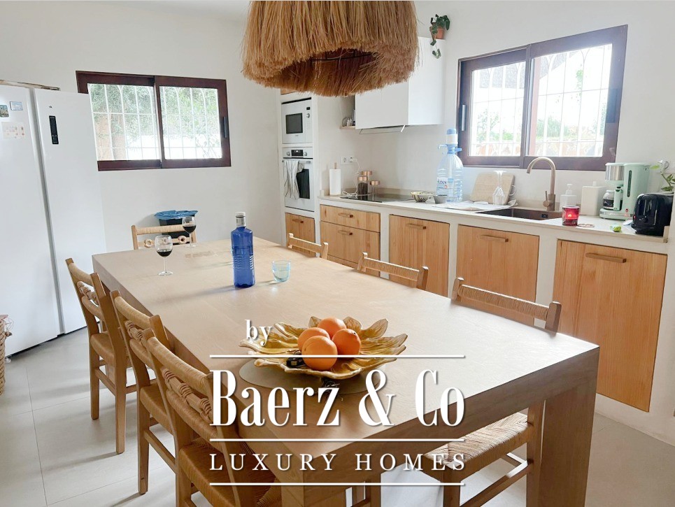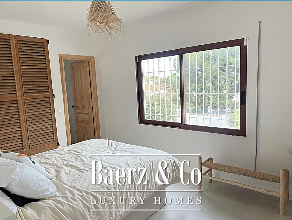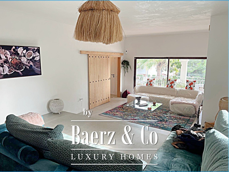 Вилла в стиле Ибицы в Куните — это элегантно обновлённый одноэтажный дом, где средиземноморский свет задаёт ритм повседневной жизни. Жилая площадь составляет 141 м², а общая застроенная — 347 м². Пространство спроектировано для плавного и комфортного передвижения по одному светлому уровню, расположено над гаражом площадью 147 м², рассчитанным на два-три автомобиля. Побелённые стены, открытая американская кухня и камин создают атмосферу сдержанной роскоши. Просторная гостиная с широкими раздвижными стеклянными дверями выходит на восточную террасу с видом на бассейн 10 на 4,75 метра, где солнечный свет движется по всему дню. Дополнительные окна на юг и запад наполняют дом естественным освещением.