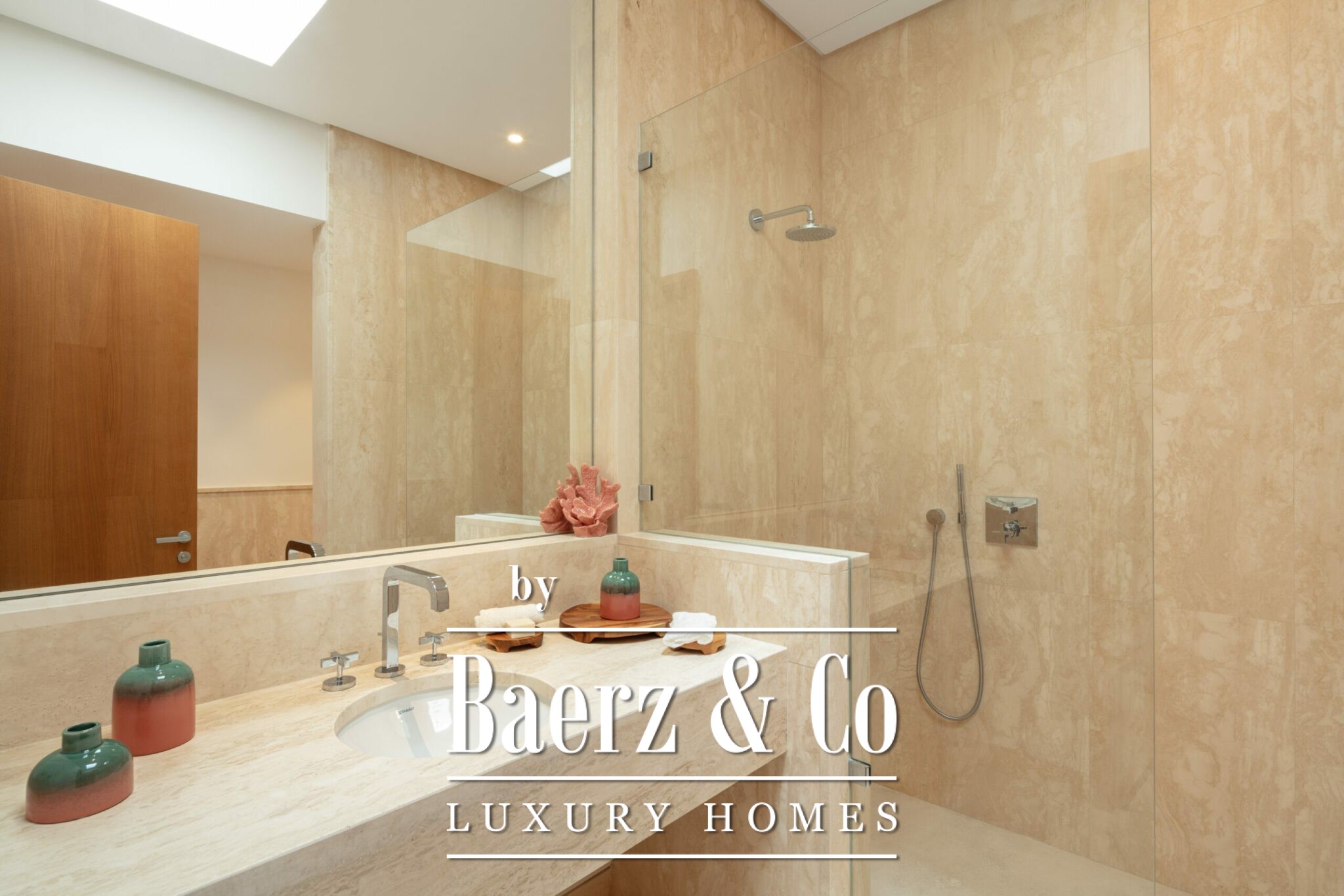 Спальни удобно расположены: две — на первом этаже с выходом в сад, четыре — наверху, соединены светлой галереей. Каждая спальня оснащена отдельной ванной комнатой и имеет доступ к верхнему саду, а мастер-сьют открывает панораму без преград.