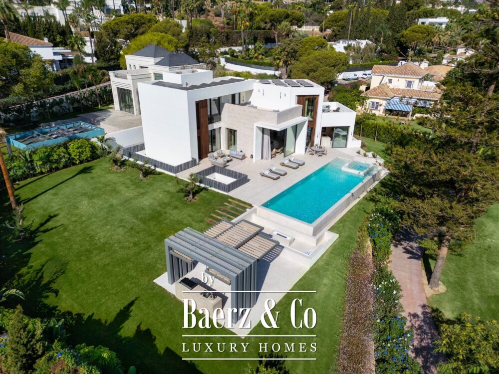 Вилла Marbella Frontline Golf Las Brisas предлагает редкое сочетание современной архитектуры и спокойной природной среды. На участке площадью 1 454 м² в престижном гольф-клубе Las Brisas в Нуэва Андалусия это недавно построенное поместье охватывает 710 м² на трех наполненных светом уровнях. Расположение обеспечивает легкий доступ к знаменитым удобствам Марбельи, роскошной марине и ресторанам Пуэрто Банус, при этом гарантируя приватность среди ухоженных ландшафтов.
