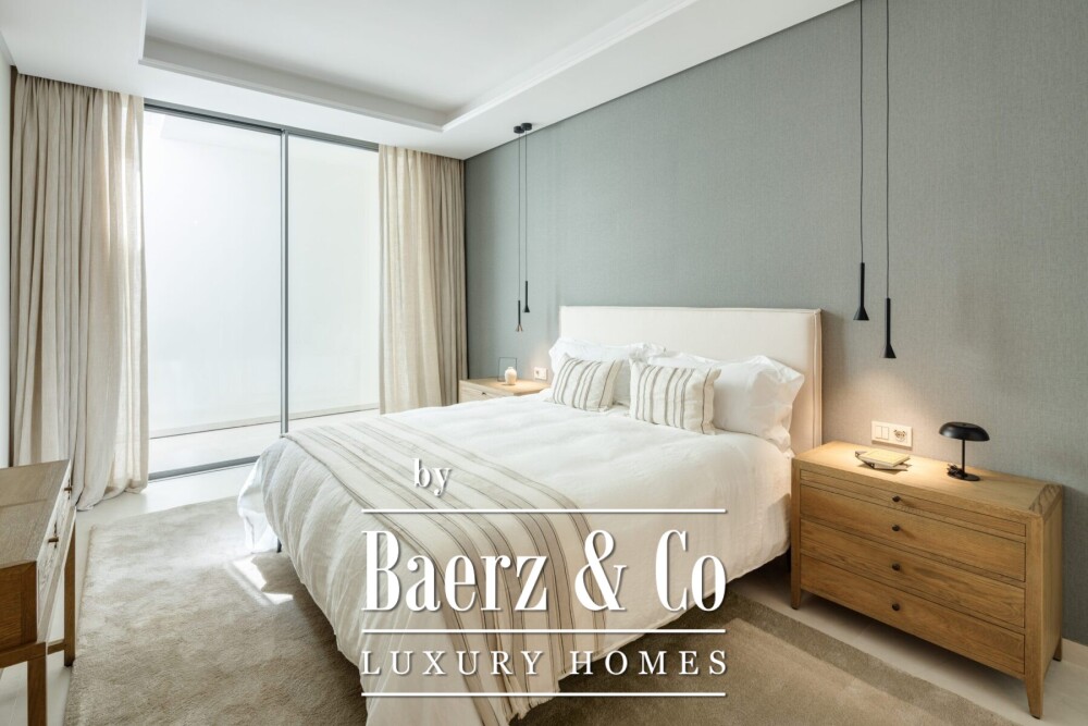 Внутри пять спален с индивидуальными ванными комнатами и дополнительный гостевой санузел создают впечатление простора и достойный уровень комфорта как в повседневной жизни, так и при приеме гостей. Высокие потолки, панорамные окна и премиальная отделка формируют атмосферу, которую гармонично дополняют теплое LED-освещение, деревянные вставки и тщательно интегрированный камень. Просторная кухня оснащена техникой высокого класса, большим островом и открывает панорамные виды на бескрайний бассейн, джакузи и поля для гольфа. Каждая главная зона расположена так, чтобы максимально использовать солнечный свет и обрамлять панорамные перспективы на гору Ла Конча, гольф-поле и спокойное озеро.