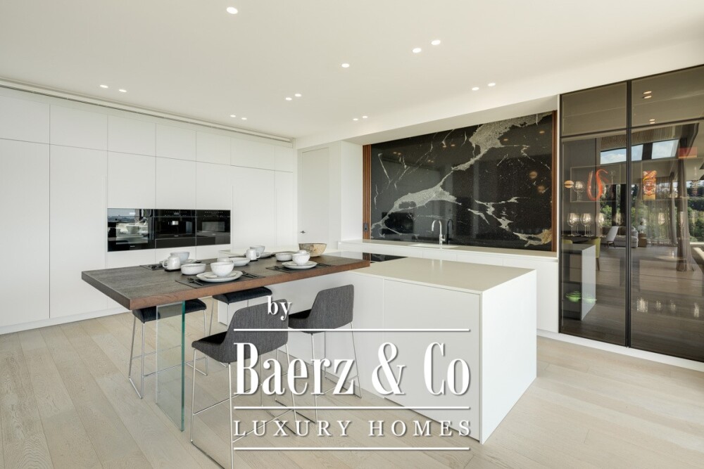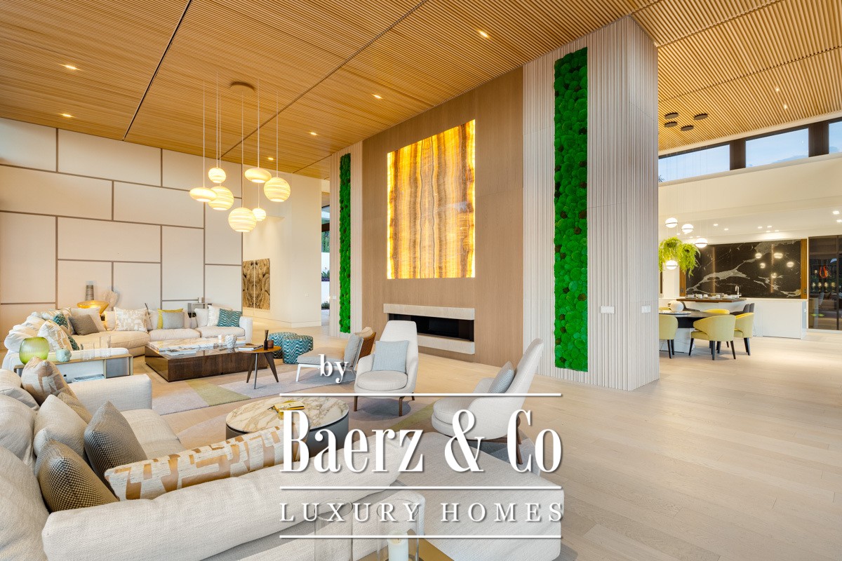 Шесть спален и шесть ванных—including главная спальня с гардеробной и индивидуальной ванной—приглашают на отдых и уединение. Первый этаж открыто соединяет пространства для жизни и отдыха, где нейтральные оттенки подчеркнуты яркими акцентами для создания элегантной атмосферы. На нижнем уровне располагаются тренажерный зал, спа-зона, хамам, сауна, винный погреб, а также зона для развлечений с домашним кинотеатром, бильярдом и покером, чтобы соответствовать любому настроению и событию.