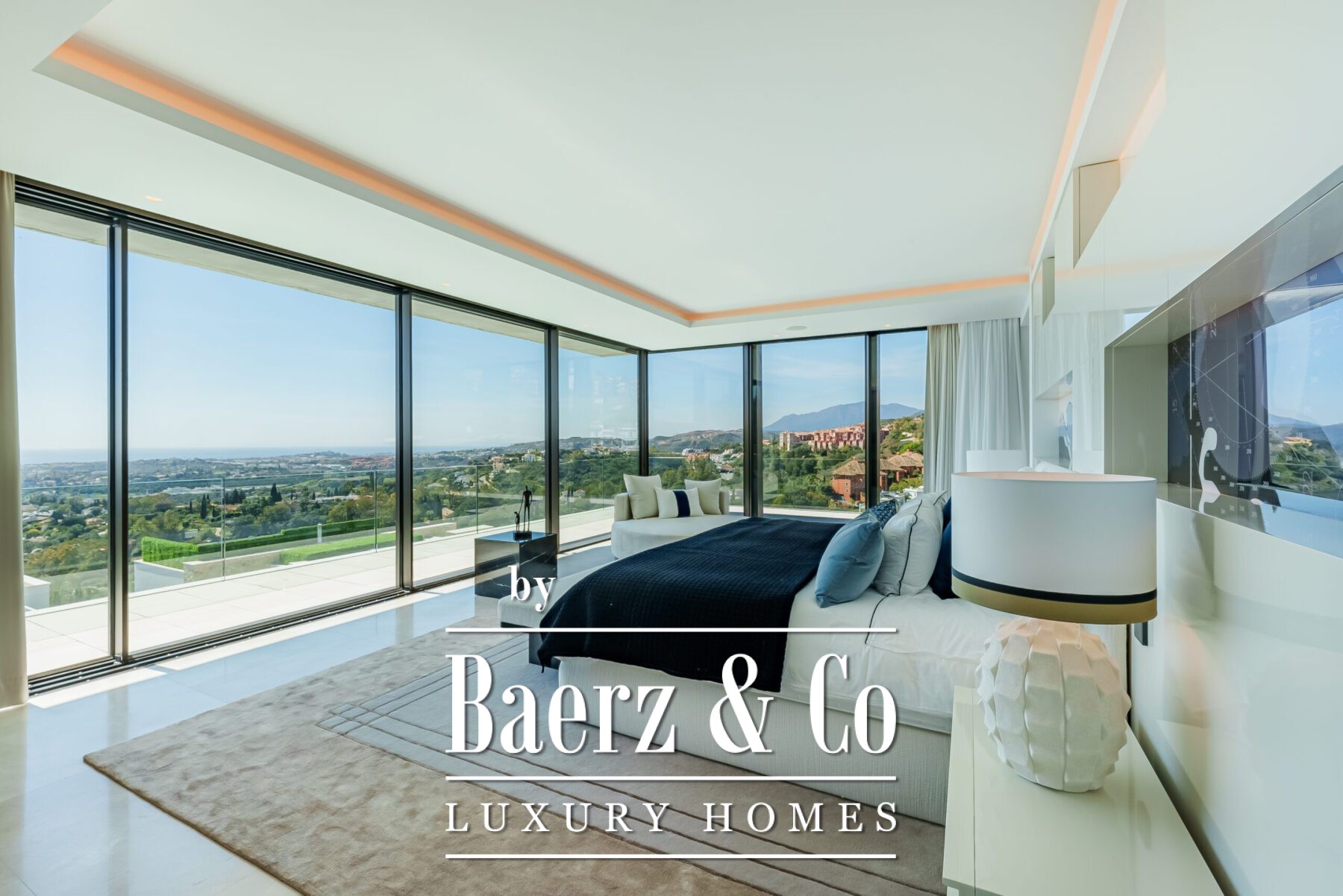 Вилла Marbella с панорамным видом на море и горы — архитектурное произведение, расположенное в престижном районе La Quinta. Эта резиденция занимает 1 451 м² жилой площади на участке 2 650 м², рационально организована для уединения, комфорта и органичного сочетания внутреннего и внешнего пространства. Вилла включает восемь спален и восемь ванных комнат, в том числе мастер-сьют с гардеробной и ванной комнатой в стиле СПА. Каждый номер ориентирован так, чтобы максимально раскрыть виды на Средиземноморское побережье и зелёные ландшафты, позволяя дому постоянно взаимодействовать с природным окружением.