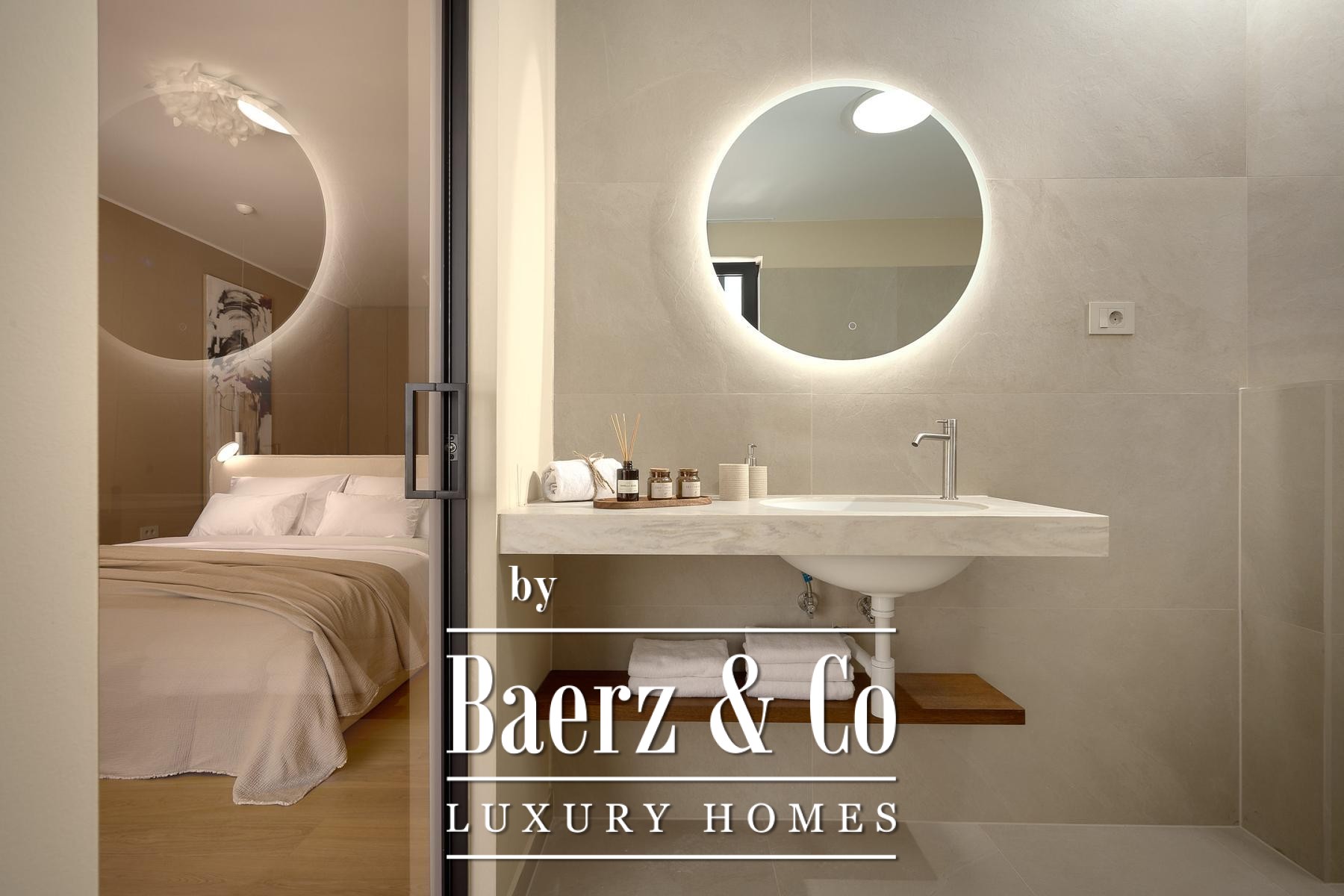 На трех уровнях 379,58 м² отведено для повседневной жизни и личного уединения. На верхнем этаже расположены четыре спальни, каждая с отдельной ванной комнатой и балконом с видом на Адриатику — здесь царят эксклюзивность и покой. В цоколе оборудовано студио для гостей или персонала с индивидуальной террасой, а также гараж на две машины, складские помещения и технические зоны.