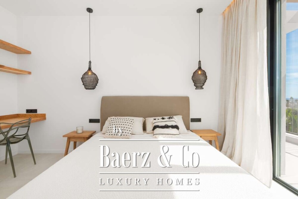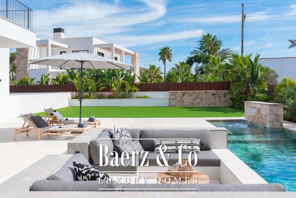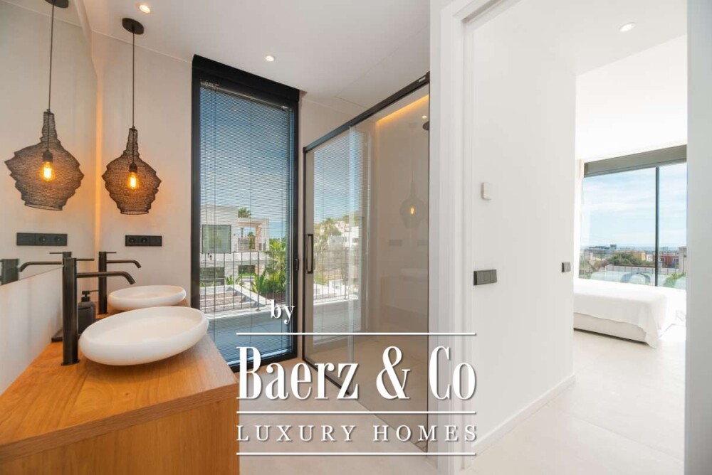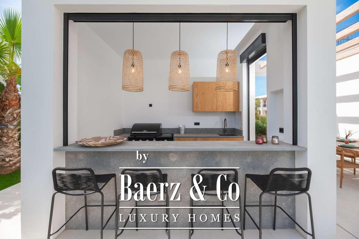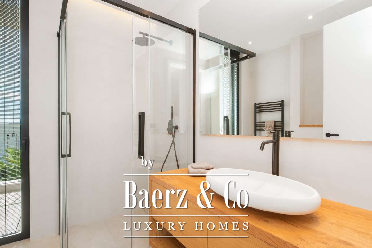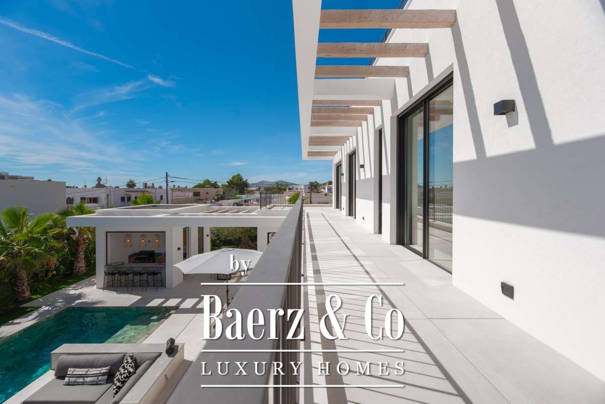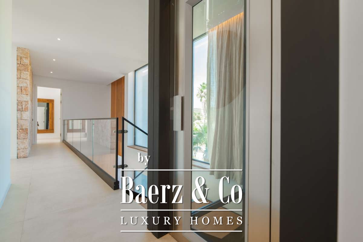 Вилла Sa Carroca Ibiza представляет собой воплощение современной элегантности, гармонично сочетающейся с непреходящим характером острова. Эта резиденция площадью 460 м² расположена на участке 1 208 м² в одном из самых спокойных и легко доступных уголков Ибицы. В нескольких минутах езды находятся знаменитые пляжи Ses Salines, энергичный центр города Ибица и удобный доступ к аэропорту, формируя привлекательный ритм жизни на острове. Вилла выполнена в сдержанном и ясном стиле, сочетающем современную архитектуру с элементами традиционной ибицианской эстетики. Светлые тона белого, бежевого и натурального дерева подчёркивают простор и объём помещений. Просторная зона открытой планировки плавно переходит на солнечную террасу, откуда открываются средиземноморские виды, скульптурный соляной бассейн и благоустроенный зелёный сад. Дуб, натуральный камень и лакированные поверхности подчеркивают статус кухни, а камин и высокие потолки гостиной наполняют пространство естественным светом и широкими перспективами. Шесть спален с выходом на террасы включают две мастер-сьюты на верхнем этаже с собственными ванными комнатами и две спальни с общей третьей ванной. Мастер-спальня на первом этаже и дополнительное гибкое помещение сочетают уединенность с простором. Стеклянный лифт соединяет цокольный этаж и крышу, обеспечивая беспрепятственный доступ, а системы «умный дом» незаметно обеспечивают комфорт и безопасность. Открытые пространства демонстрируют круговую панораму на 360 градусов: погружённый лаунж, бассейн с водопадом, открытая пергола с летней кухней, баром и зоной барбекю. На территории предусмотрено пять парковочных мест, включая подземный гараж и зарядную станцию для электромобилей, что обеспечивает практичность и устойчивое развитие. Эта вилла — синтез роскоши и традиционного стиля Ибицы, предназначена для тех, кто ценит спокойную красоту, гармоничную среду и неповторимые виды — исключительная роскошная вилла на продажу в Sa Carroca Ibiza.