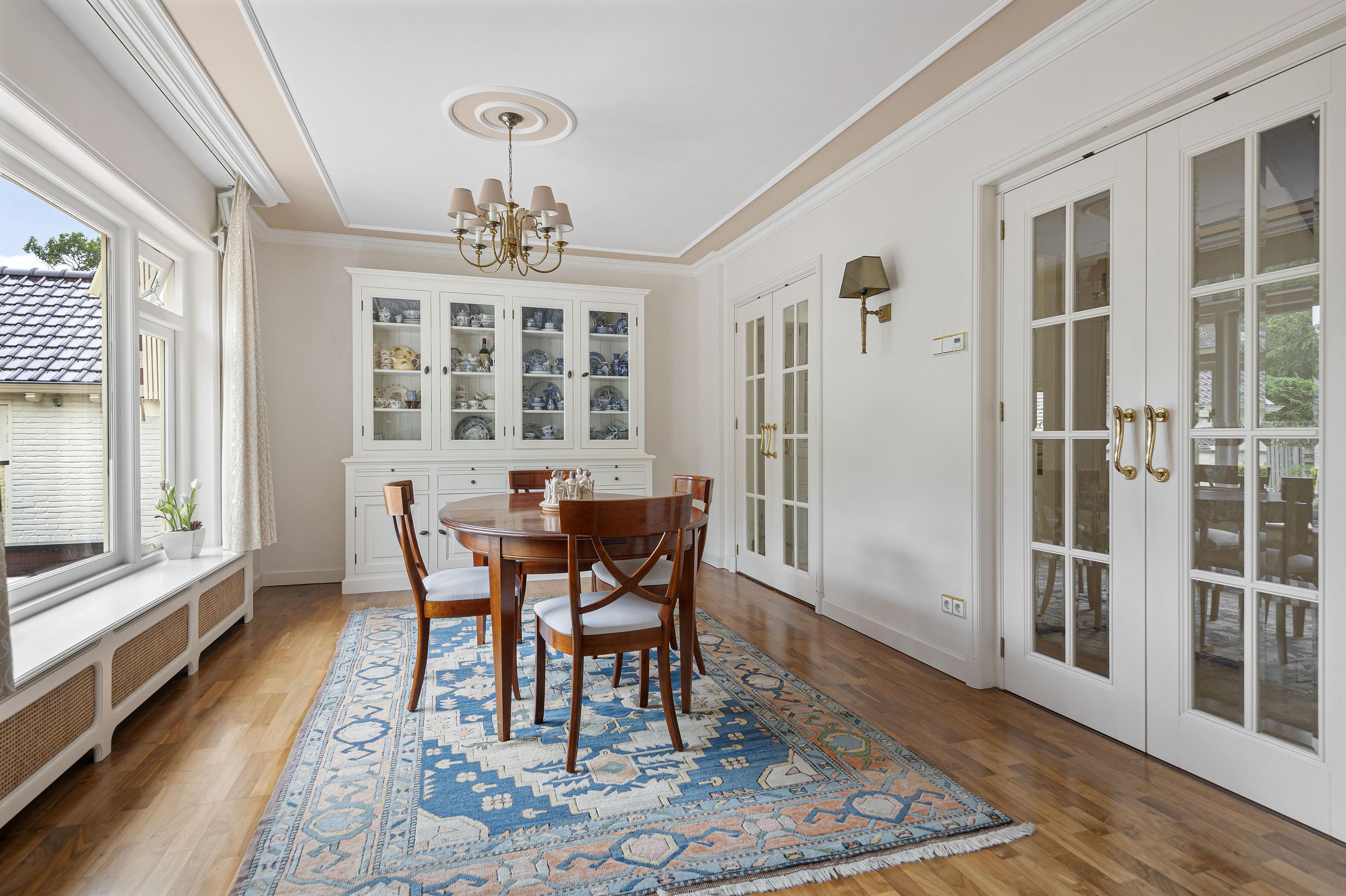 Вилла Sassenheim предлагает ощущение пространства и приватности на участке 1 130 м² в престижном жилом районе Нидерландов. Эта вилла сочетает в себе основательный архитектурный стиль 1951 года и 199 м² жилой площади, формируя гармонию между классикой и современностью. С первого взгляда вас встречает приватный въезд с обилием парковочных мест, ведущий в светлые интерьеры с гостиной Г-образной формы, оригинальными витражами и паркетным полом. Естественный свет плавно заполняет современную оранжерею и еще одну гостиную, обе расположены на отапливаемом кафельном полу, что расширяет пространство для отдыха и предлагает разнообразные возможности для релаксации или приема гостей.
