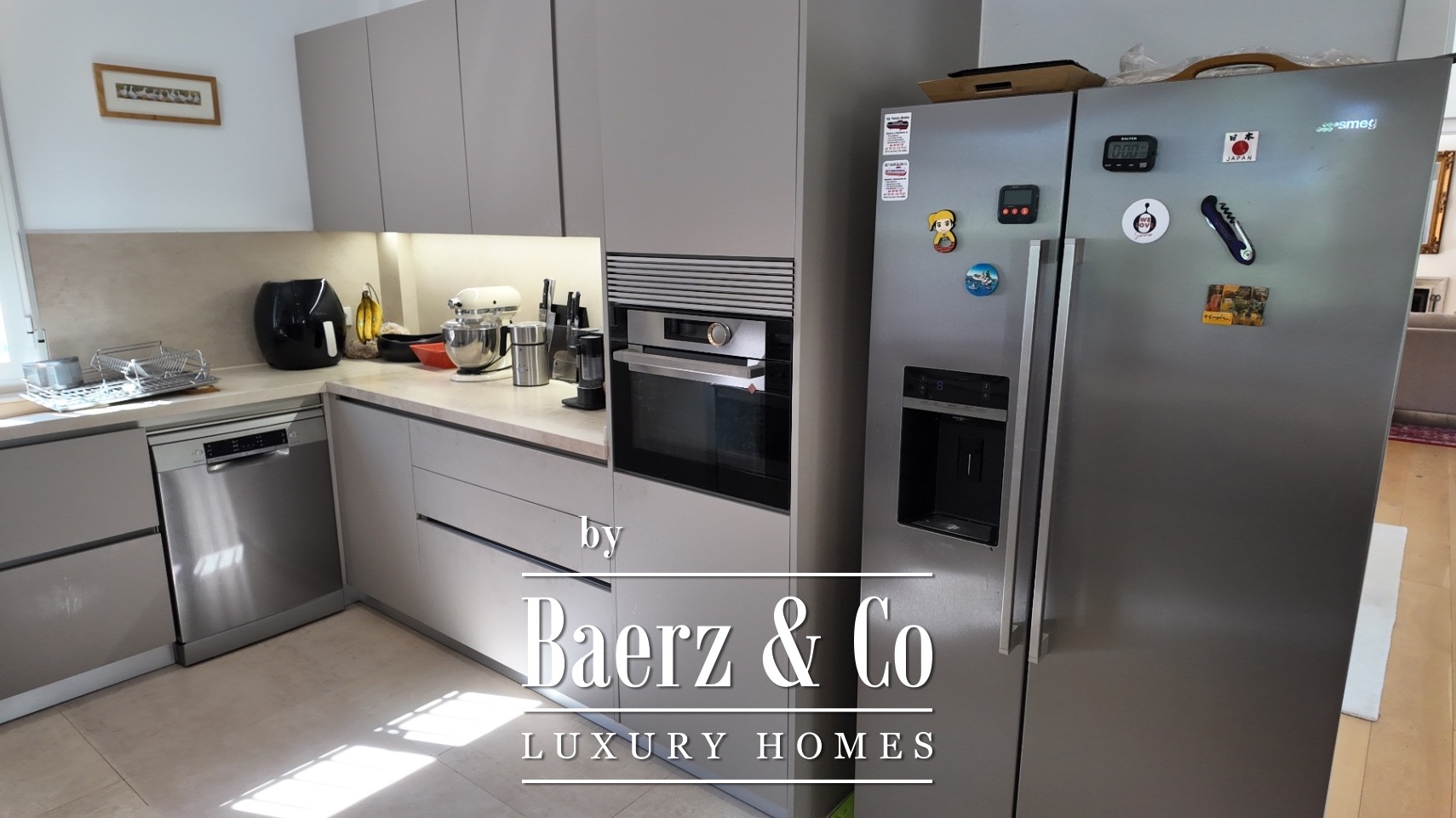园林为无忧享受而精心打造,设有带预装加热设施的咸水泳池、宽阔的露台和全套夏季厨房。双车库、空调、中央燃气暖气、带电池的太阳能板、北欧橡木地板、安全系统及软水设备,全面提升了舒适度与能效。