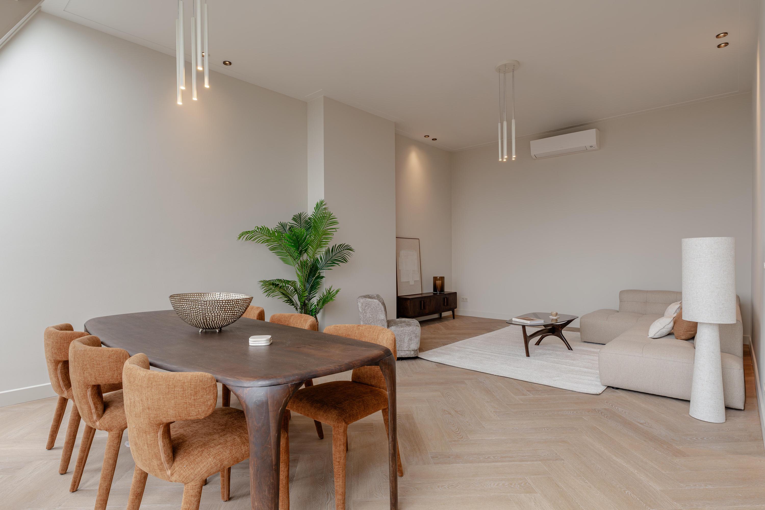 阿姆斯特丹Oud-Zuid公寓,在这套102.4平方米的住宅中,诠释了精致的居住体验。公寓位于优雅街道的四楼,以高挑的天花板和引人注目的屋顶结构著称,并于后方配备大面积天窗。起居区沐浴在充沛的自然光下,窗外尽览城市绿意,令您在城市核心也能感受到罕见的宁静。