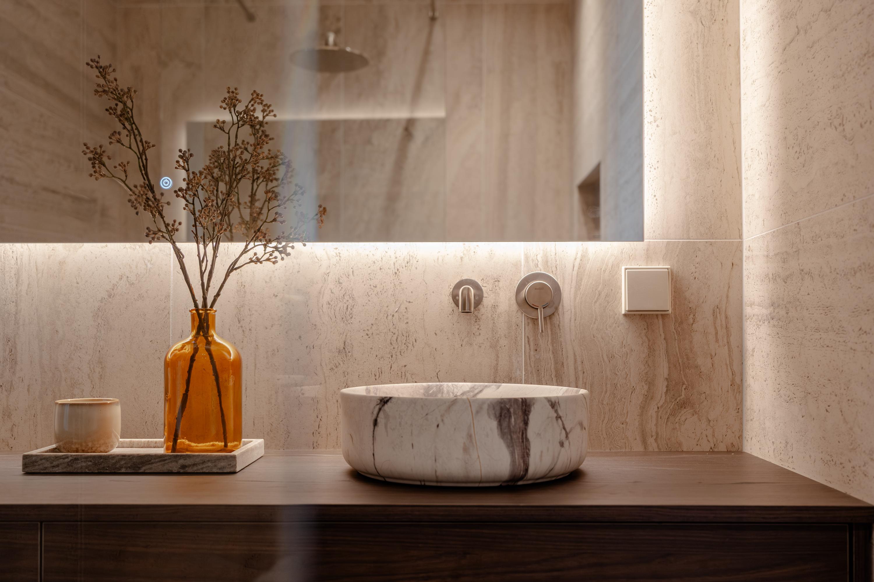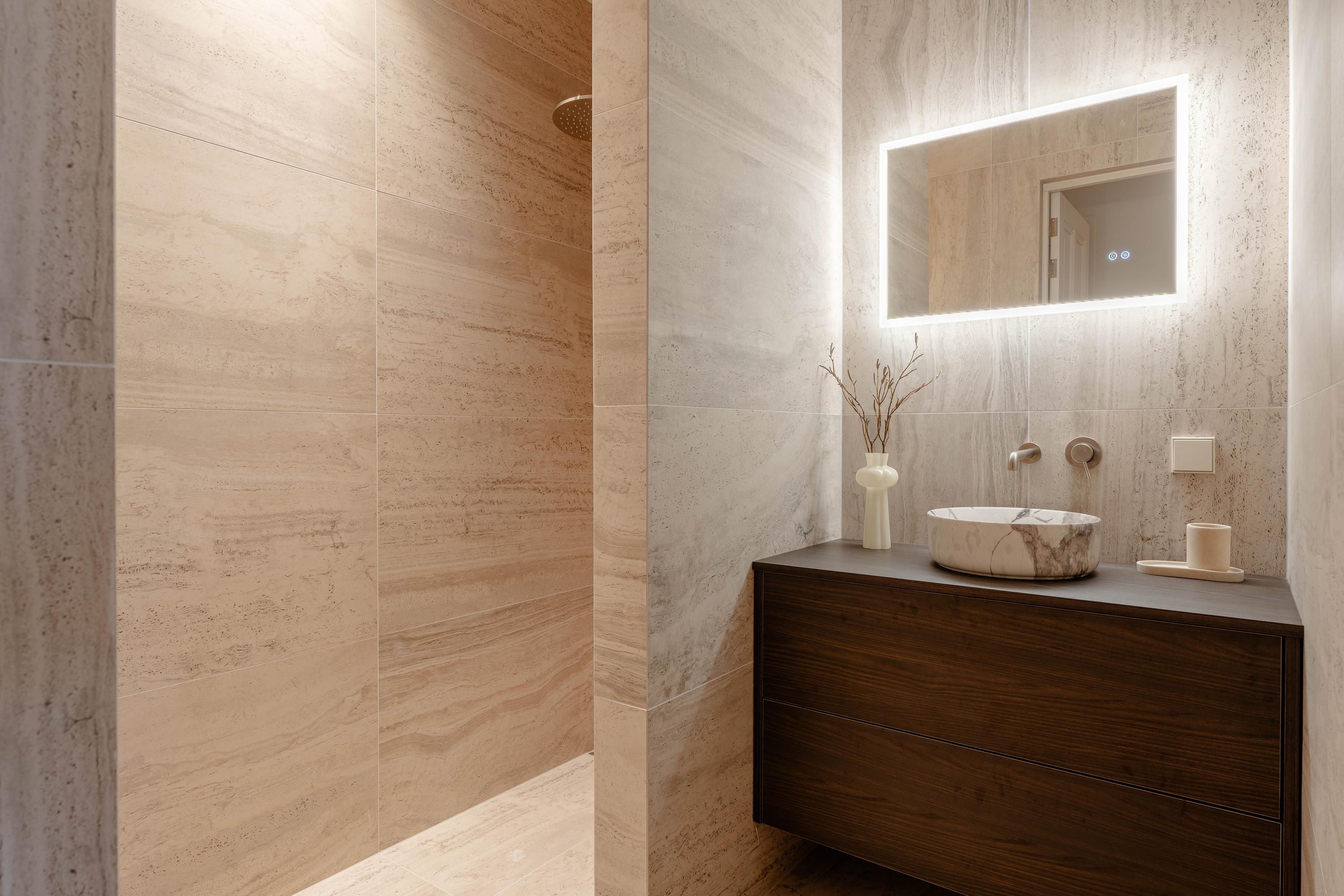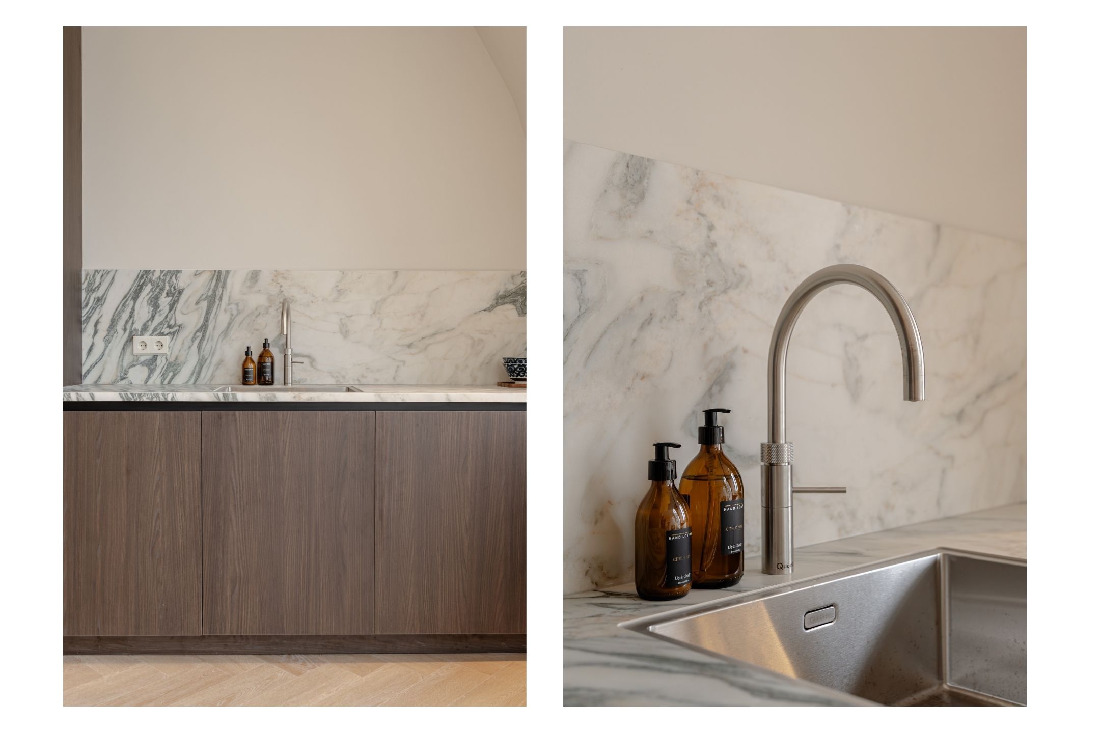 宽敞的客厅与厨房位于后侧,融为一体,适合款待宾朋或享受静谧的夜晚。装修简洁且隽永,高效的电磁灶、Quooker智能水龙头、组合烤箱、恒温储藏柜与充足收纳空间,为日常生活带来便利。两间布局合理的卧室为住户带来私密与安宁,主卧套间内设独立卫浴、步入式淋浴与双台盆。