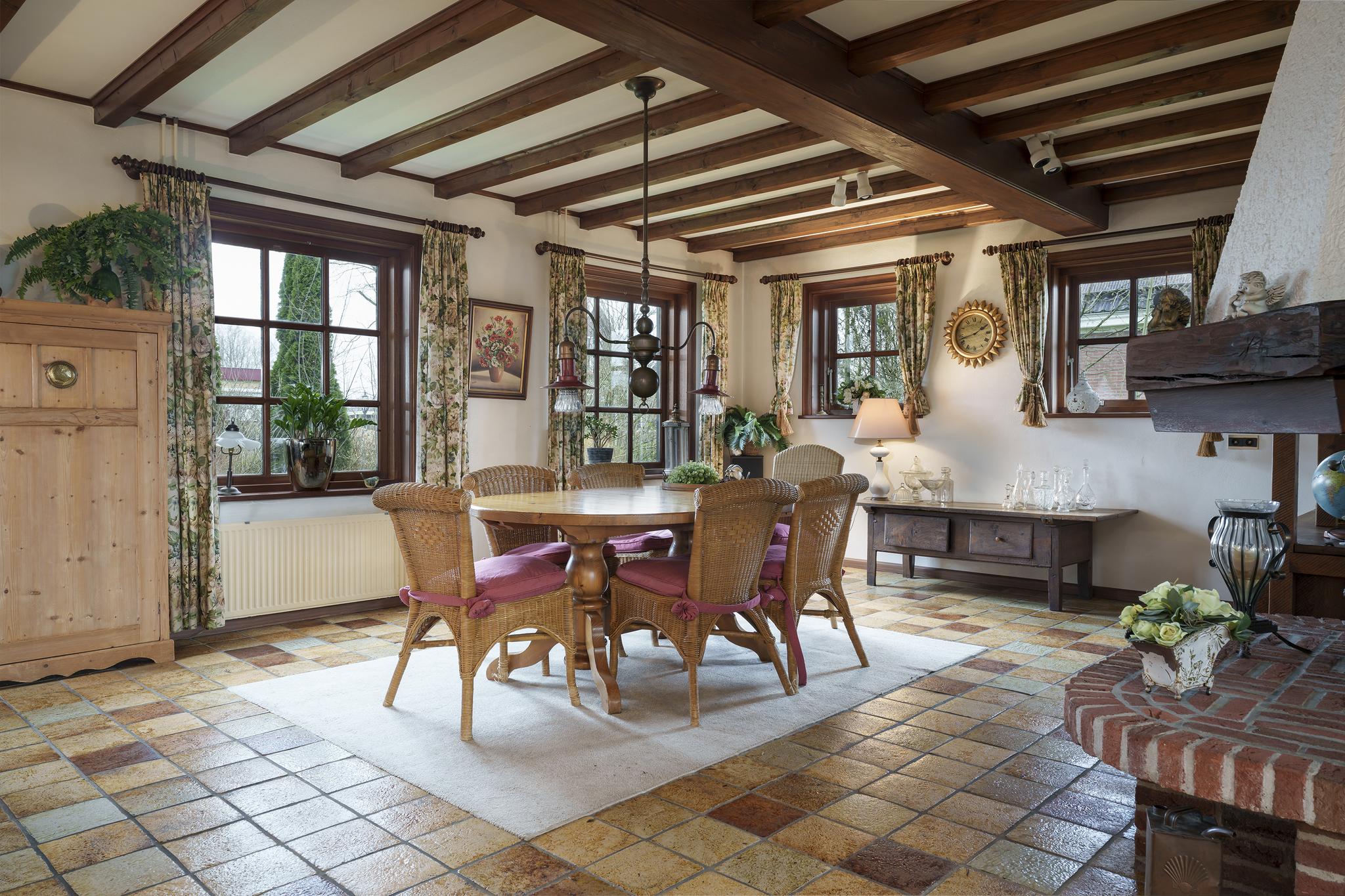 Een meesterstuk van de hand van architect Tom Markus, is deze royaal bemeten boerenvilla (312 m2 GO, NEN 2580). Perfect 'dwars' gesitueerd op een handzaam kavel met veel privacy (4460 m2 EIGEN GROND). Oerdegelijke bouw, maar met nostalgische elementen zijn verwerkt in het ontwerp. De gemetselde gevels met ijzeren ankers en houten luiken in het zicht, de samengestelde kap met wolfseinden en gemêleerde klassieke dakpannen en het luik in de gevel van de garage, zijn een knipoog naar het verleden.