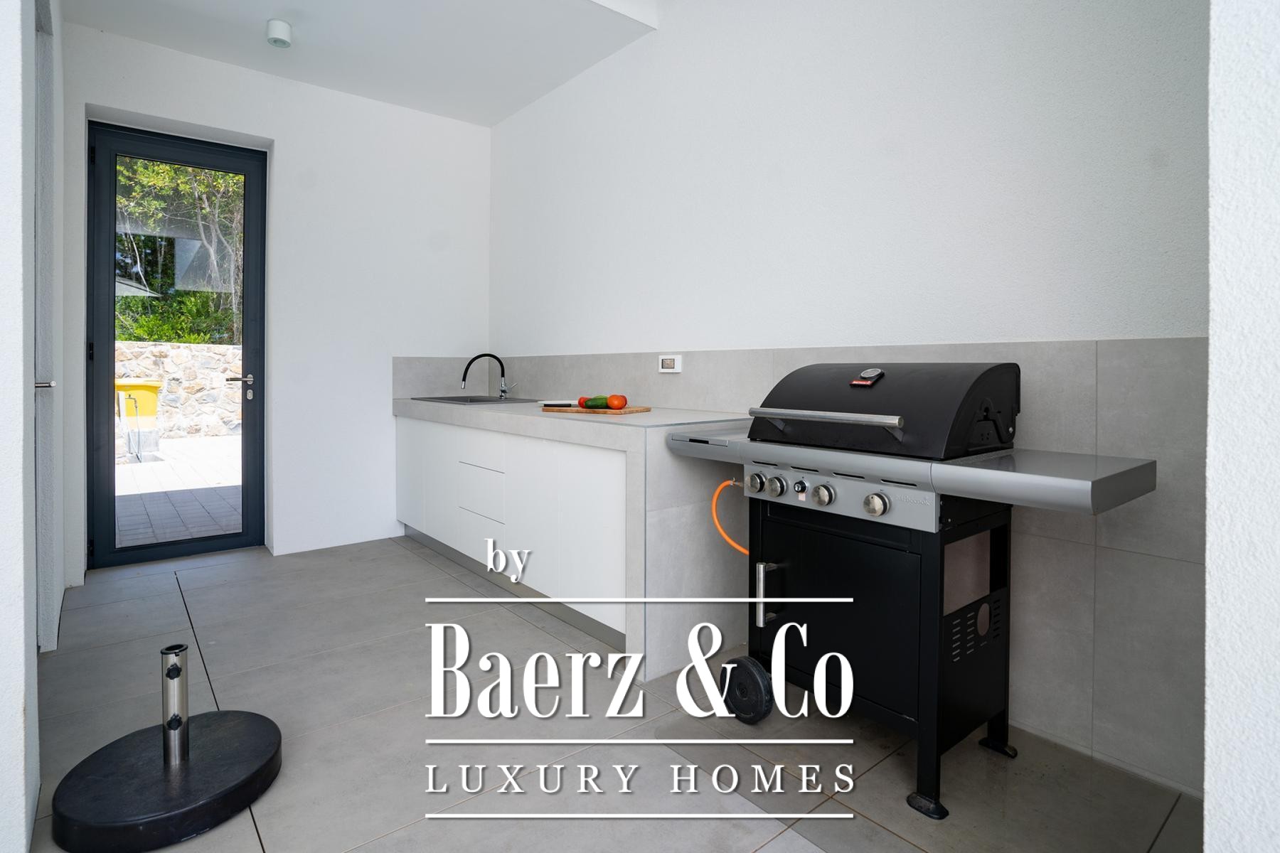 Villa Rab 别墅将隐私与建筑美学巧妙融合,坐落于拉布岛Palit安静的秘境之内,占地5,000平方米。通过一座私人桥梁跨越静谧的小溪进入别墅,四周环绕茂密森林,并配备钢制电动大门及先进安保系统,为业主打造无与伦比的私密空间与独享的归属感。位置优越,距亚得里亚海海滩仅1.0公里,距历史悠久的市中心2.0公里。