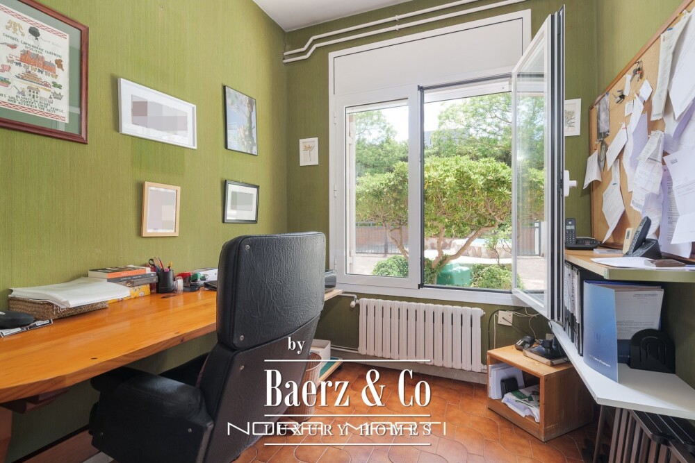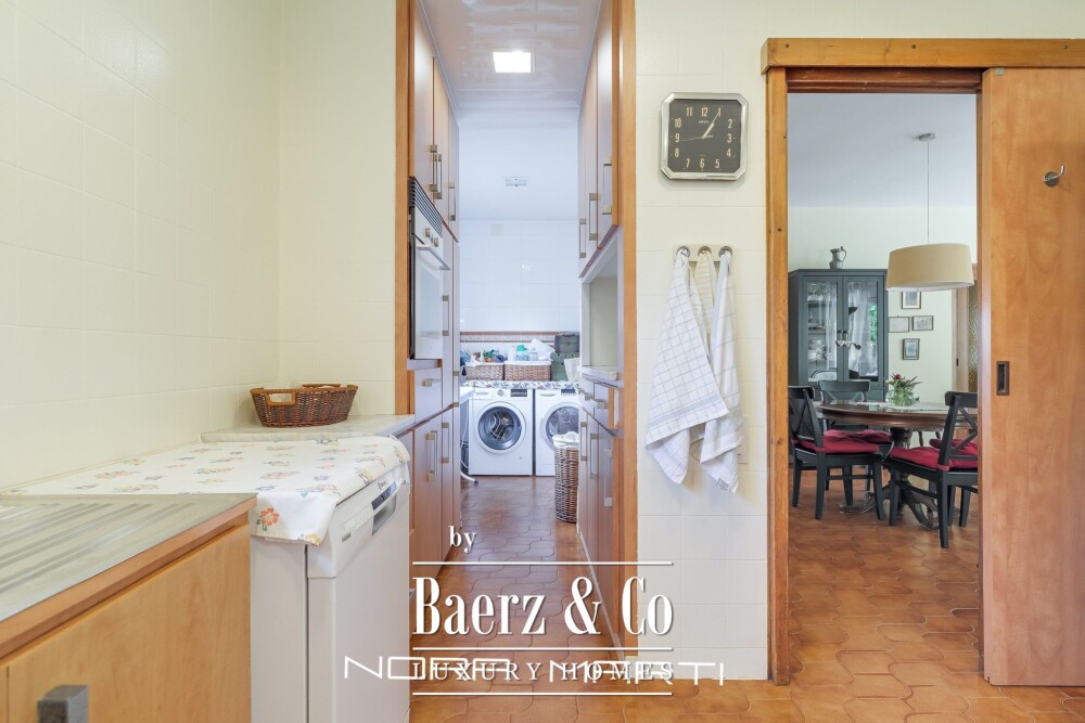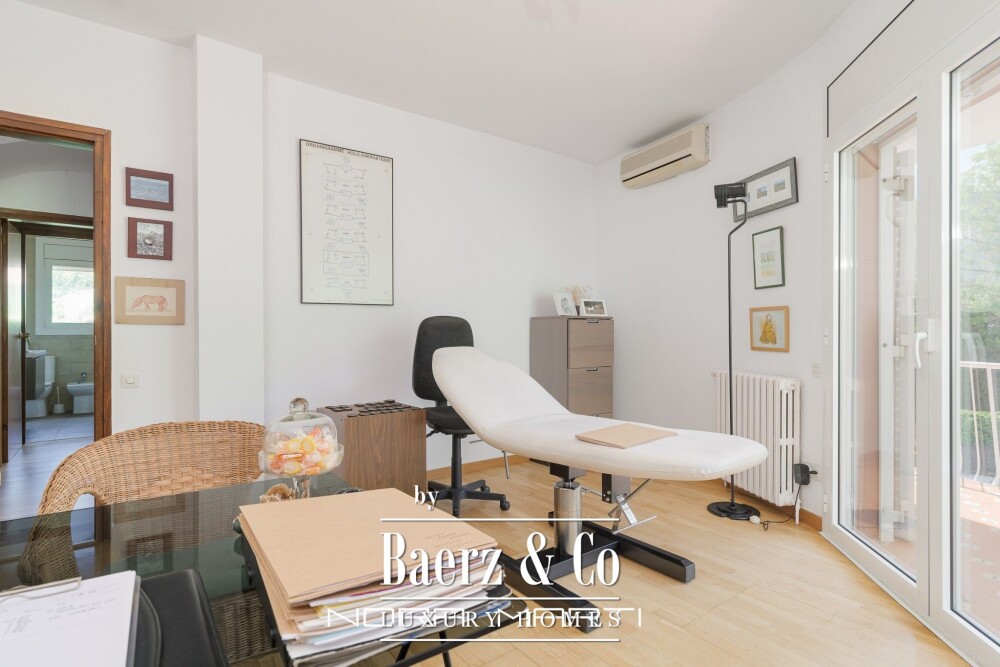 圣库加住宅提供375平方米精心规划的空间,坐落于620平方米地块上,距离Valldoreix车站仅几分钟步行路程。该物业融合精致设计与私密性,船帆状立面引入阳光,直通精心打理的花园与泳池。120平方米的底楼包含一个带直接门厅通道的40平方米车库,宽敞的客餐厅、为日常生活设计的厨房、实用的洗衣烫衣区、独立书房与全功能浴室一应俱全。