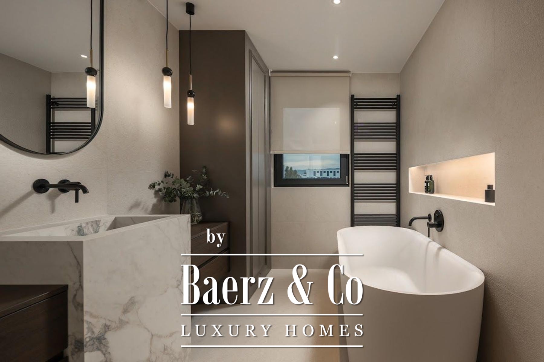 现代生物乙醇壁炉营造起居室亮点,主卧套房配有宽敞步入式衣帽间、触控照明及甄选家具。所有房间皆通往环绕式露台,自然流通与户外空间完美融合。更有13.10平方米储藏间、设计师厨房搭载高端家电、65英寸三星Frame电视、红酒柜及定制艺术装置等亮点。